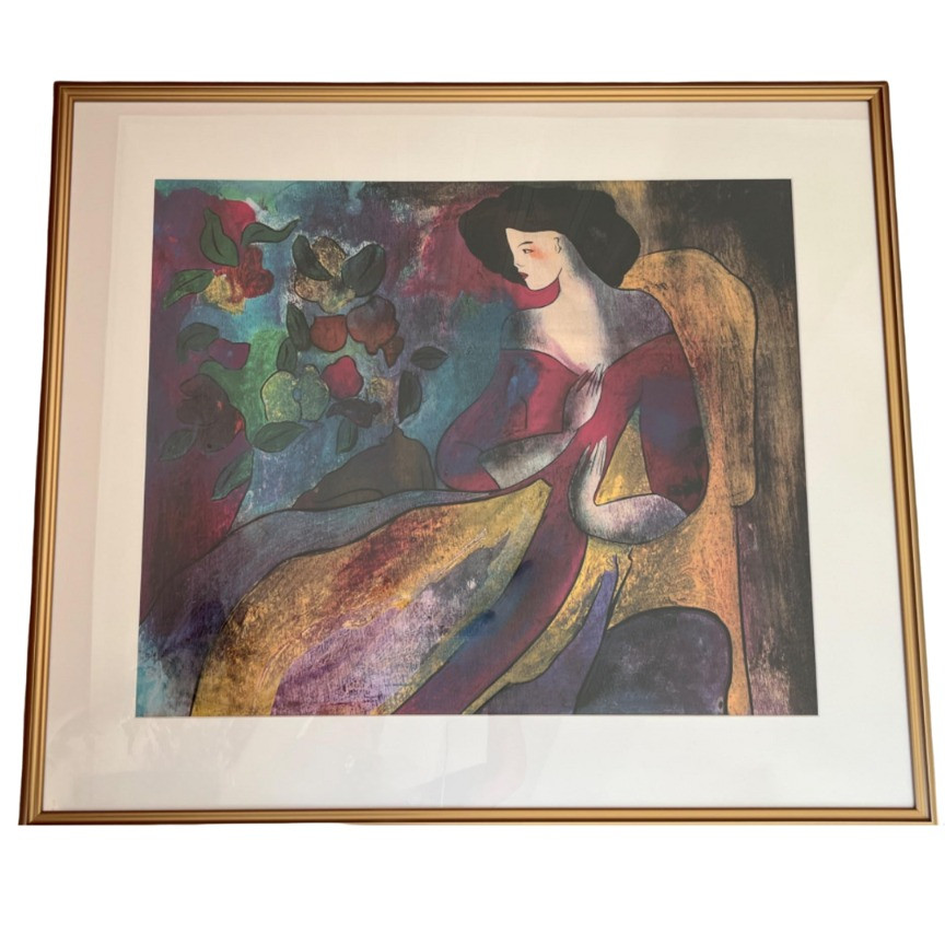 This appears to be a Linda Le Kinff print of her painting called "Annabella". No visible signature (could be under matting?). This seriolithograph print is cited here and the owner has another visibly signed Le Kinff on auction at Lot 19.