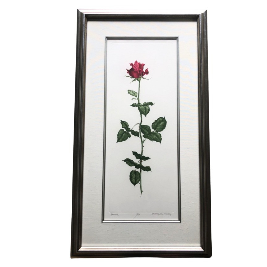 Framed and matted under glass. Exquisite single rose print by Artist Charlotte Ann Meckley. Limited Edition of 21 out of 100. Beautifully framed. Signed by artist.