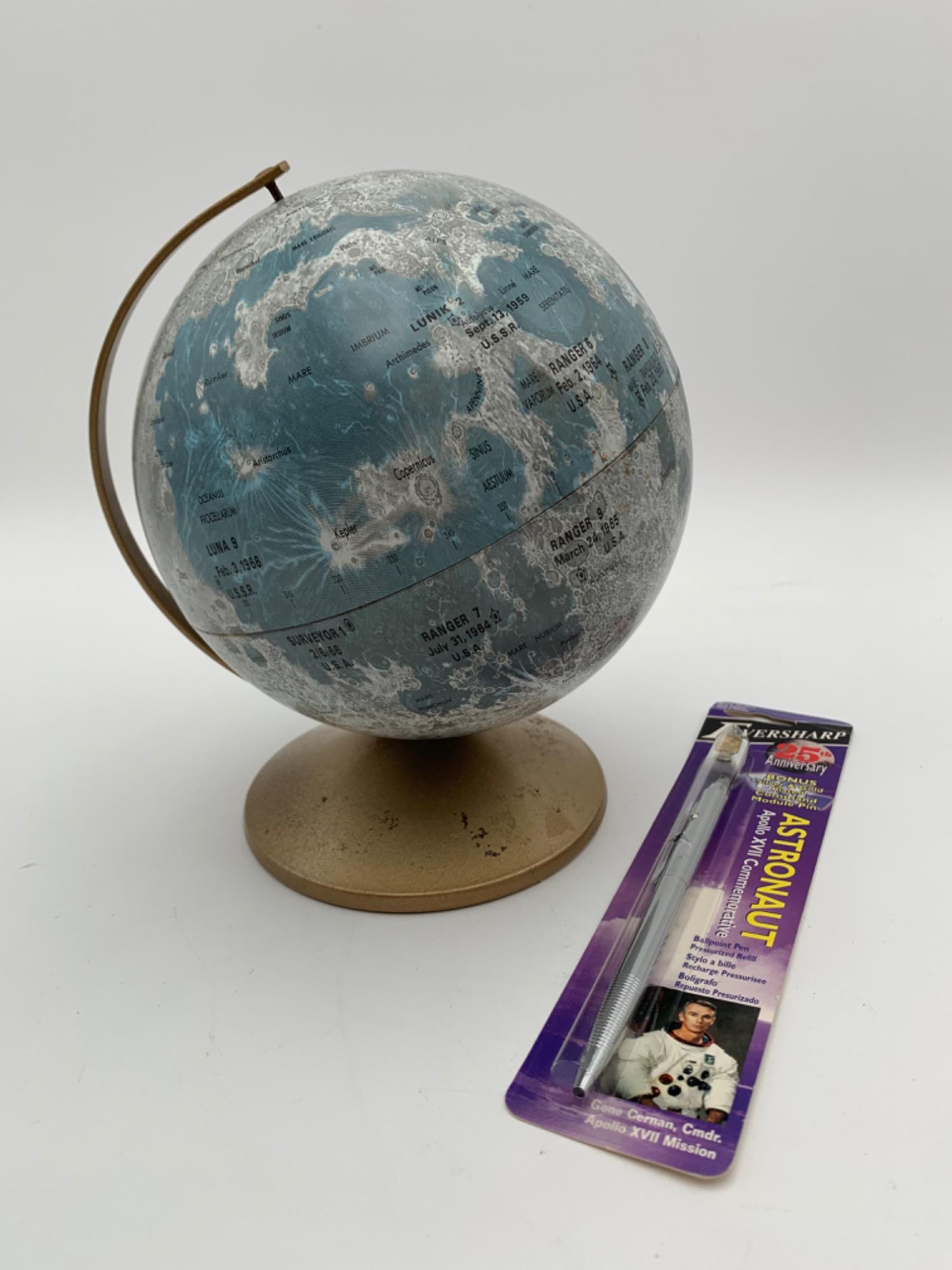 one small dent between Ranger 7 & 8 locations. Base needs a little bit of cosmetic gold paint & it would look brand new! Also included is a pen commemorating the last man to walk on the moon - Gene Cernan. From Eversharp Pens with pressure-propelled ink. New in original packaging from 1997.