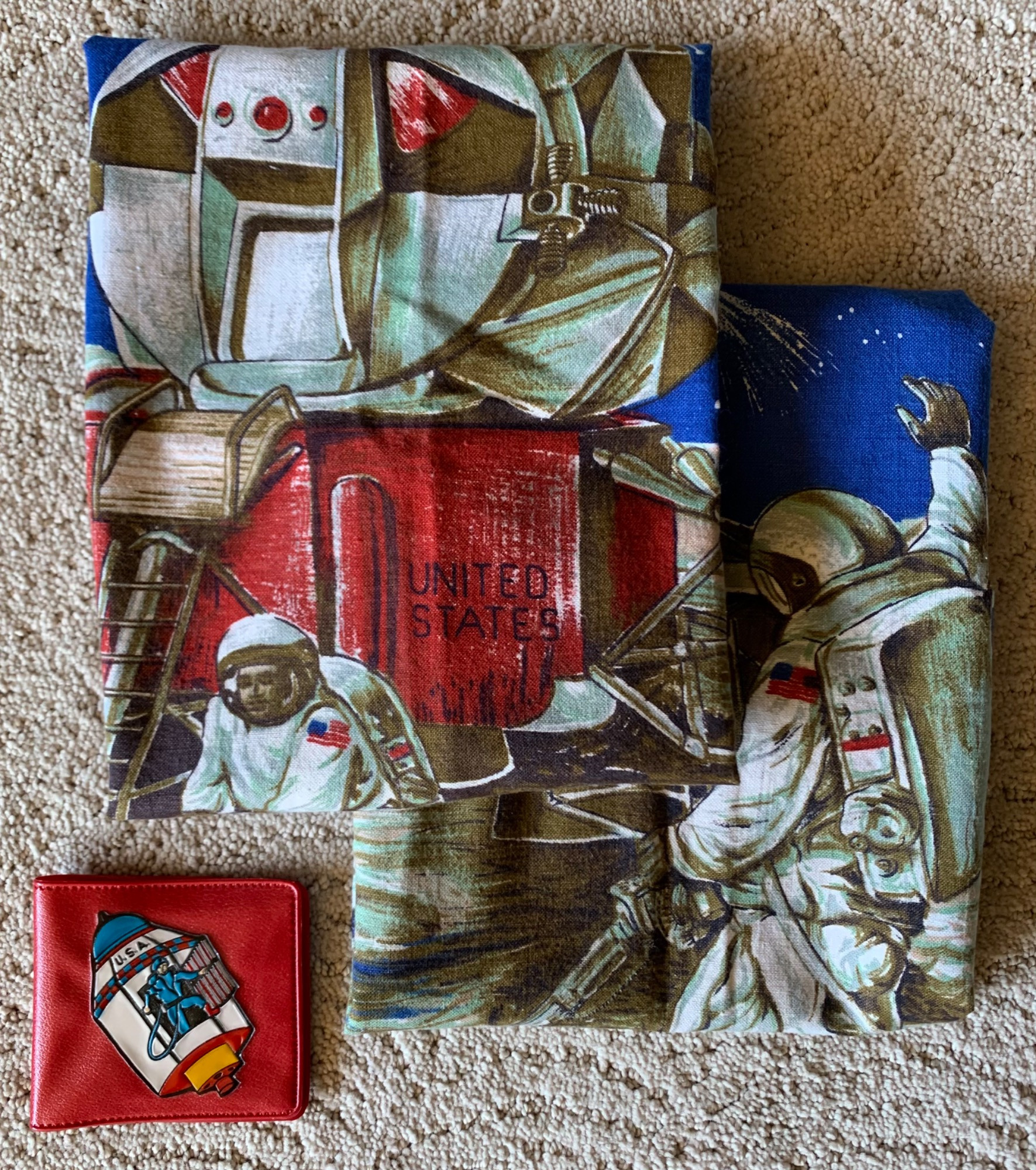 Lot # 29 - Kids' Space Decor - Curtain Pair & Wallet - 1960s/1970s