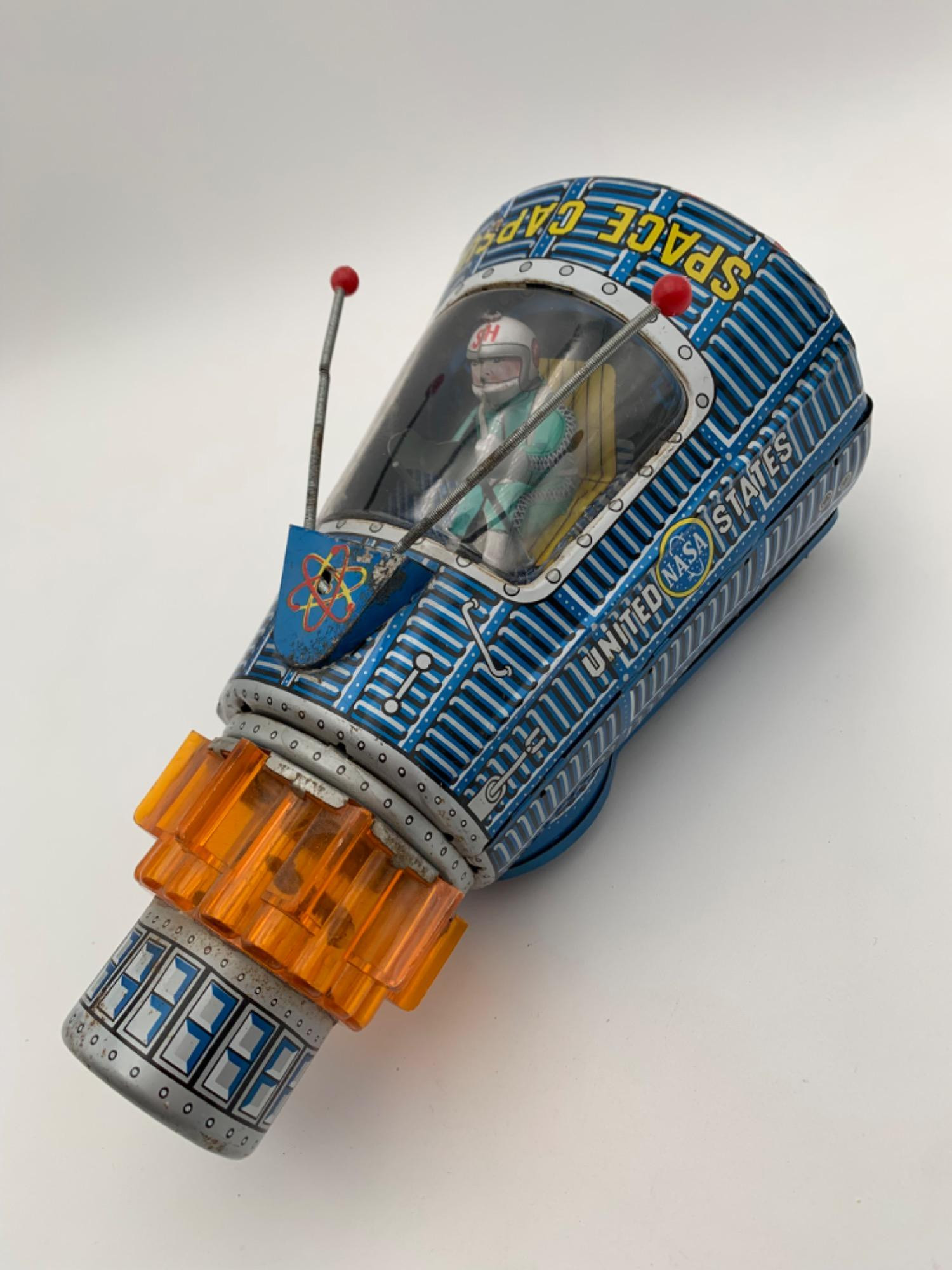 (circa 1960) NASA Space Capsule from SH-Horikawa of Japan in blue. Astronaut in