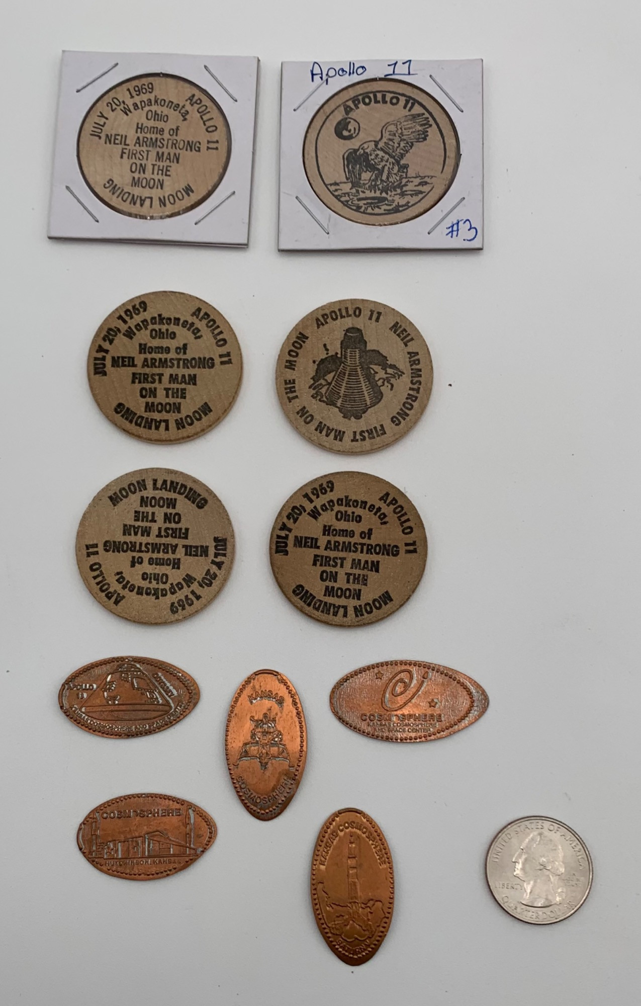 Set of 5 identical Neil Armstrong “wooden nickels” celebrating