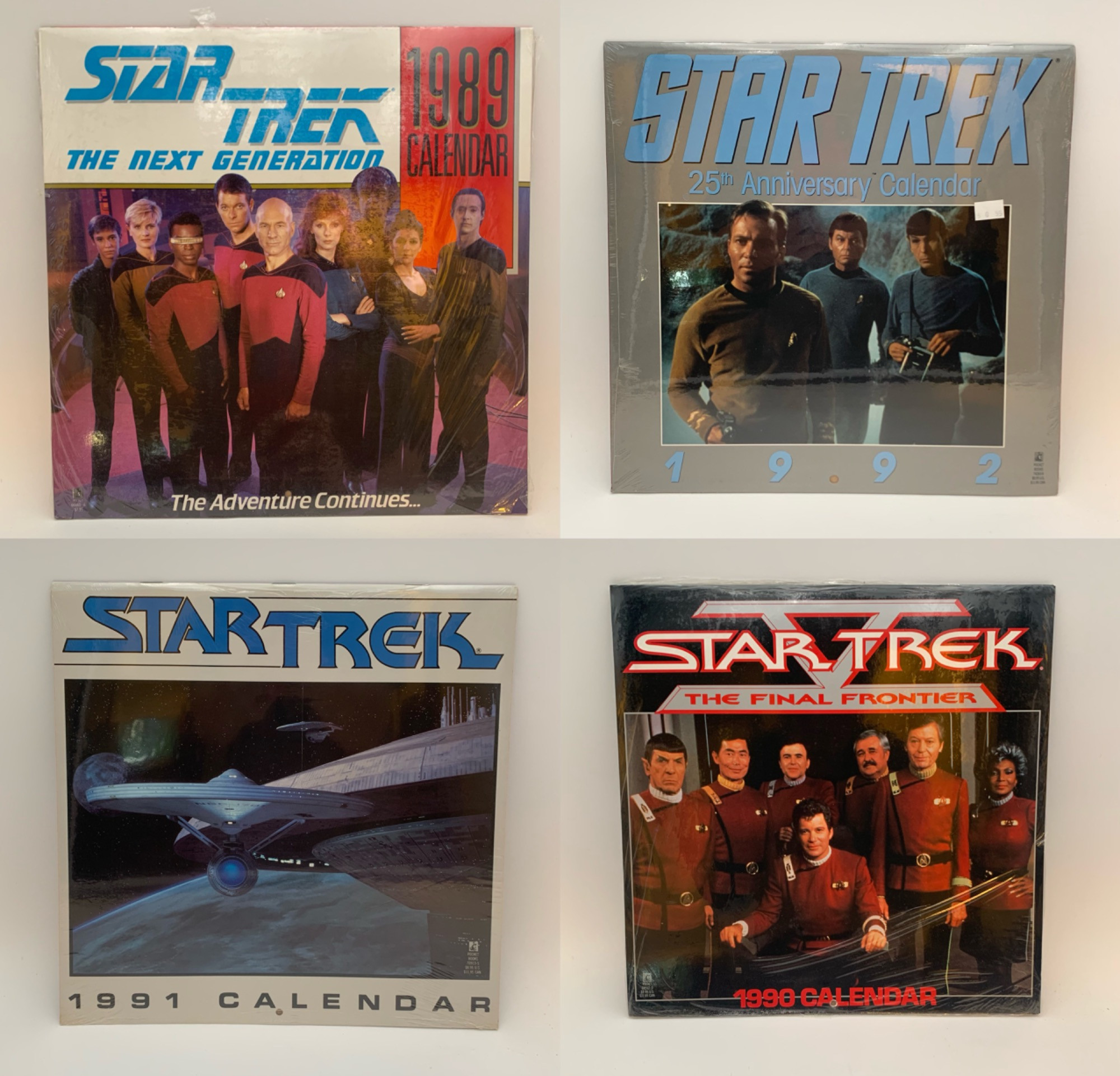 4 vintage (but new in original shrink-wrap) Star Trek calendars