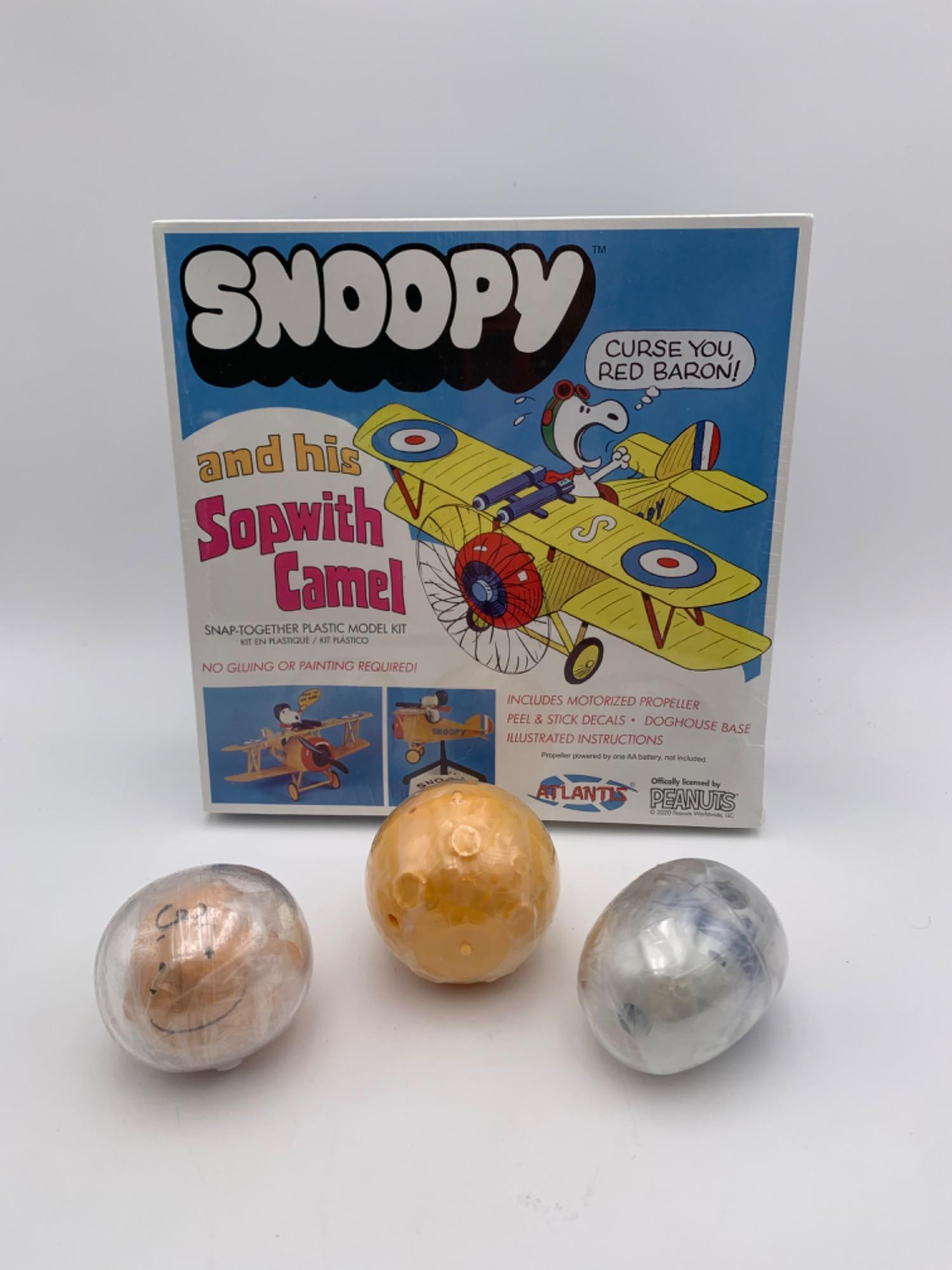 Snoopy & his Sopwith Camel airplane model from Atlantis (2020). Model snaps together with no glue. It has a motorized propeller & decals