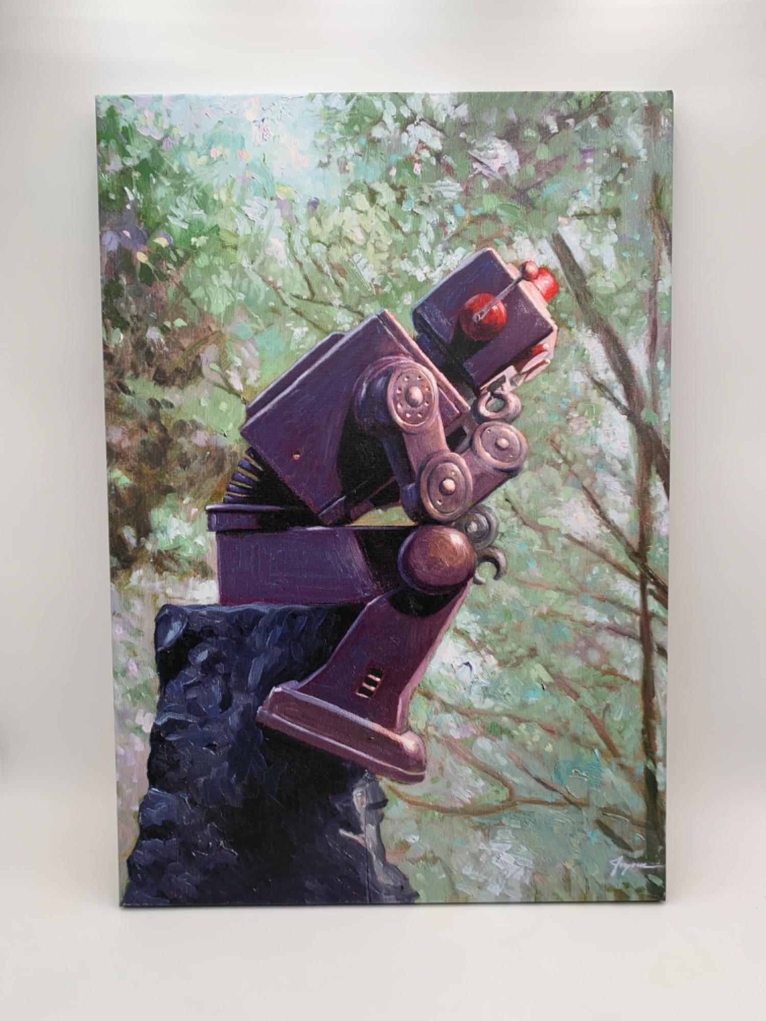 “The Thinker”. This is a reproduction print, but the quality is very high; you expect to feel the impasto paint when you touch the canvas & are surprised when it is actually smooth and flat. From icanvas on wooden stretchers with corner reinforcement. Great conversation piece in pristine shape. *For more info on the artist: https://ericjoyner.com/