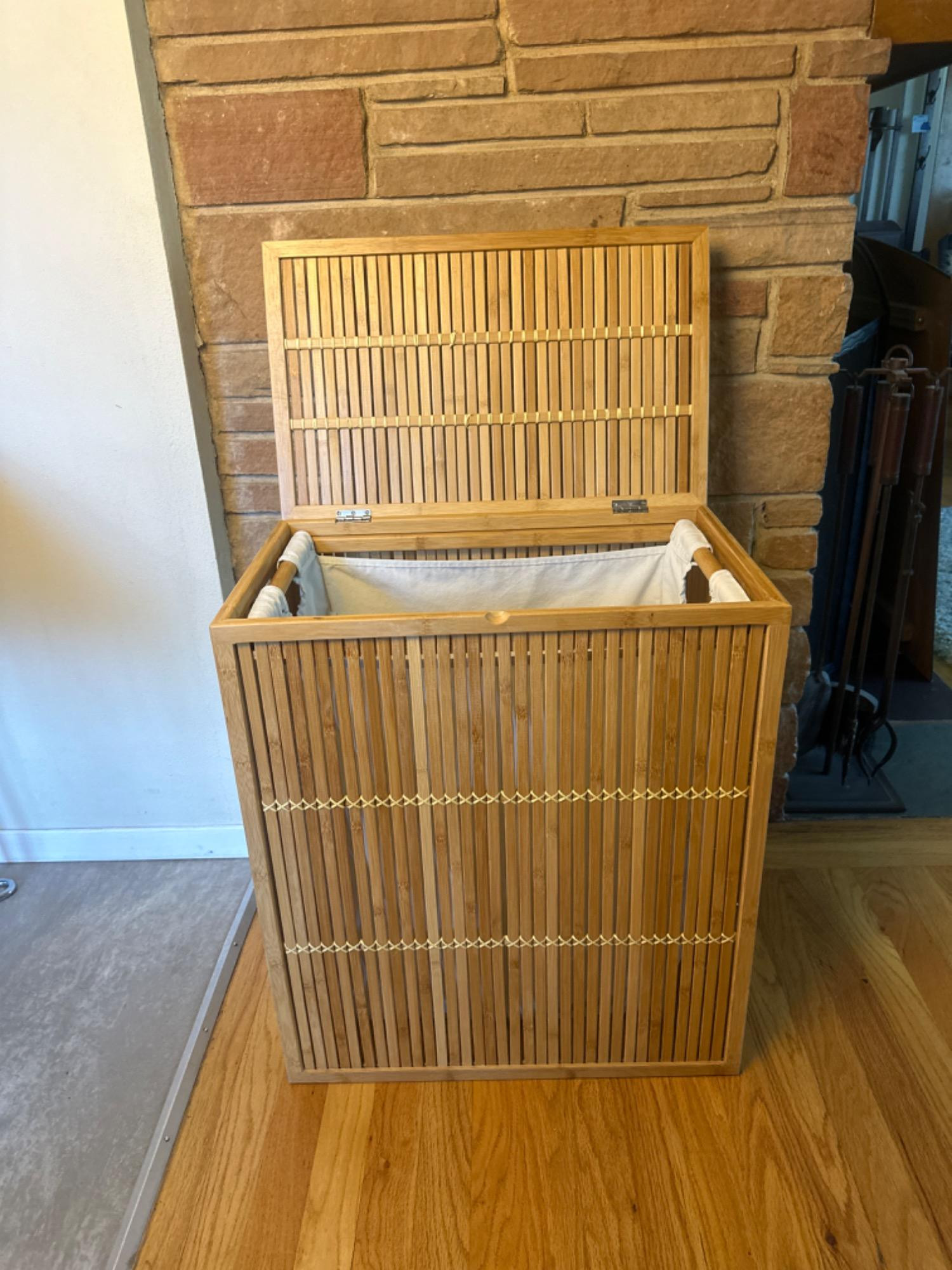 Bamboo Clothes Hamper This stylish hamper features a removable inner liner with a frame to help transport your clothes to the laundry room
