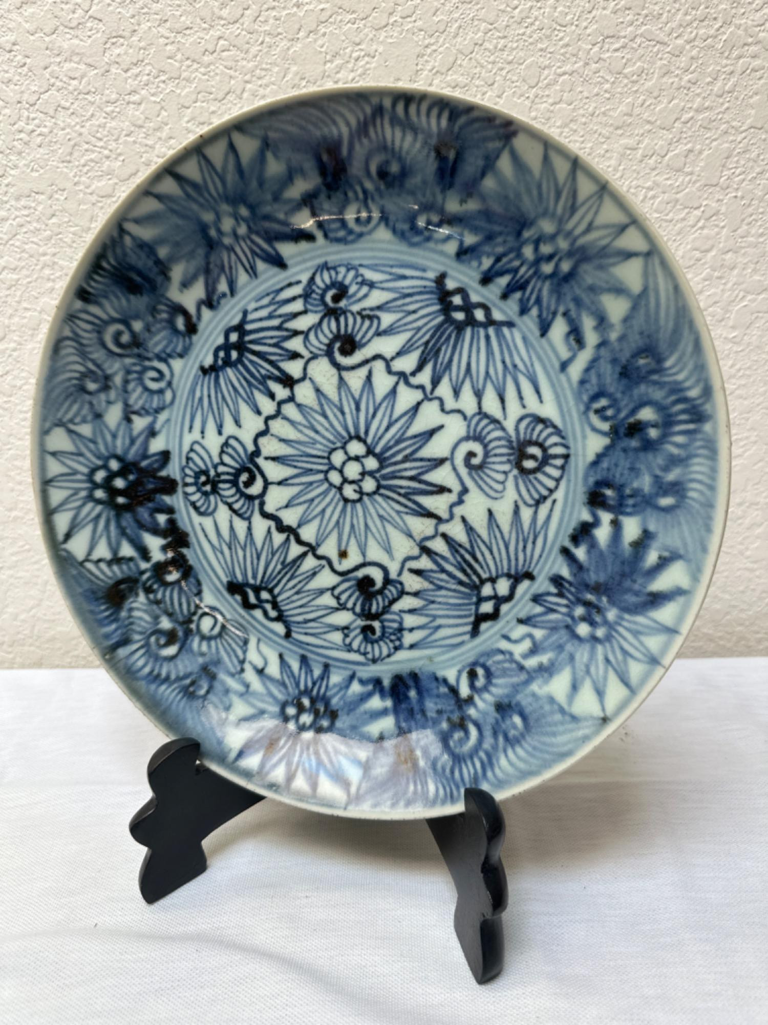 Antique Chinese Blue & White Plate - Qing Dynasty c. 1800 9.75 x 1.75