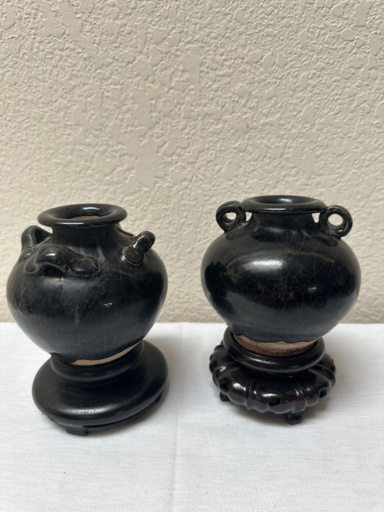 Lot # 134 - Two 4” Glazed Vintage Jars on Stands