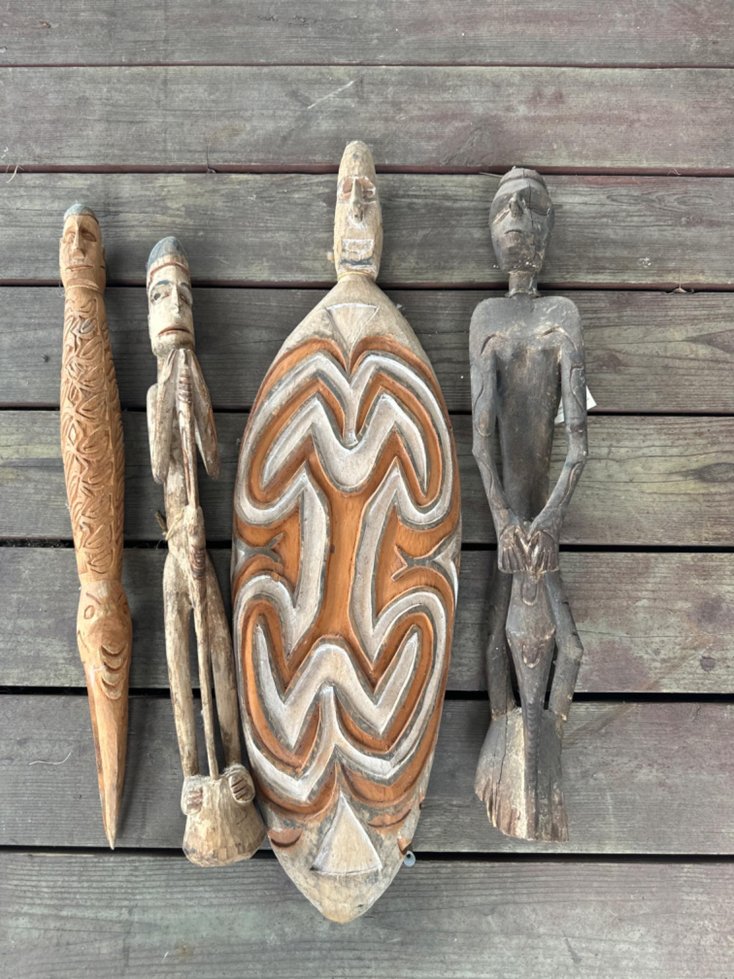 Asian tribal shield carved from wood original Asmat shield and figures (see pictures).