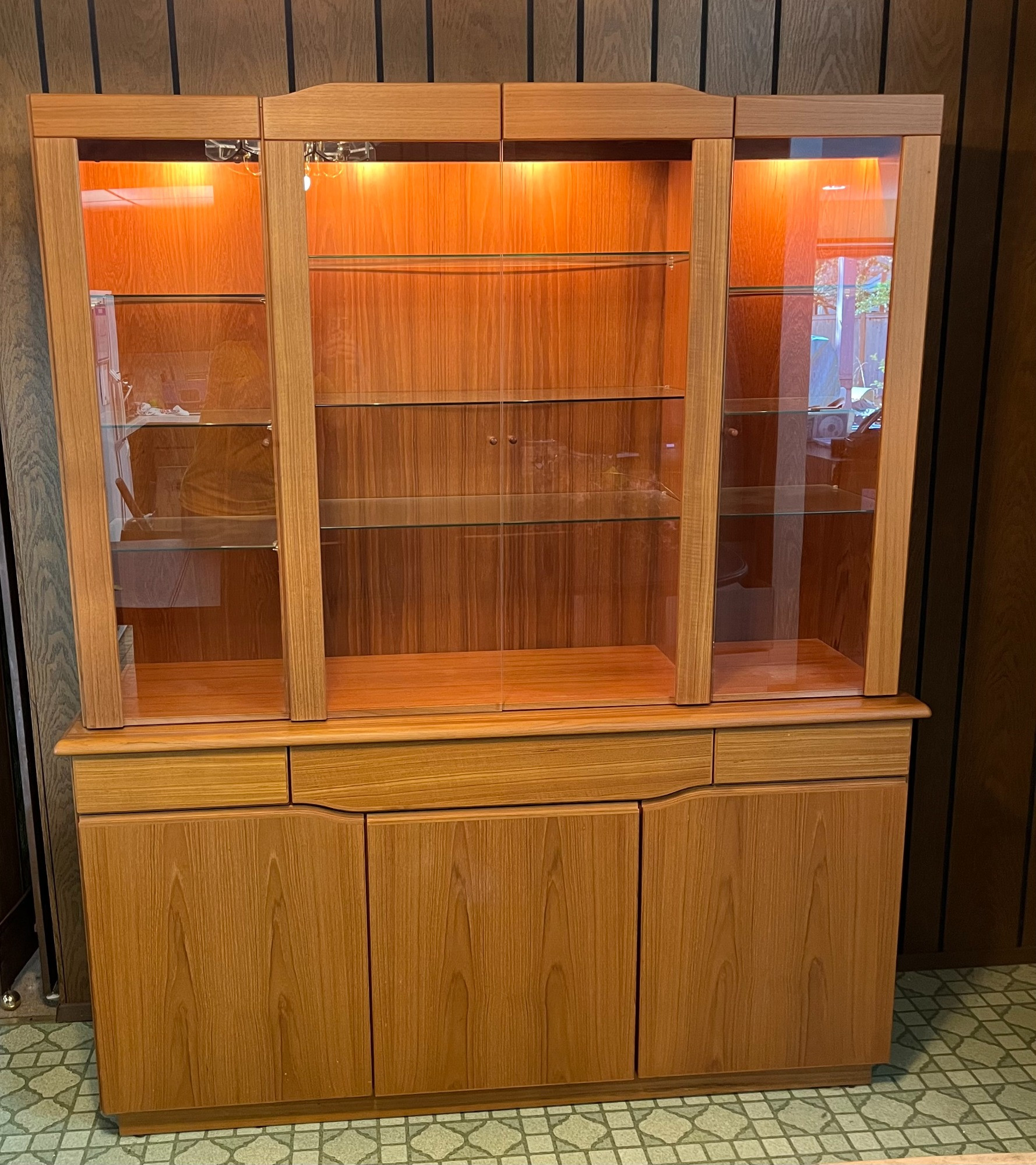Dania Skovby Teak Lighted Sideboard with Hutch Hutch: 62”L x 17”W x 43”H Sideboard: 65”L x 19”W x 33”H