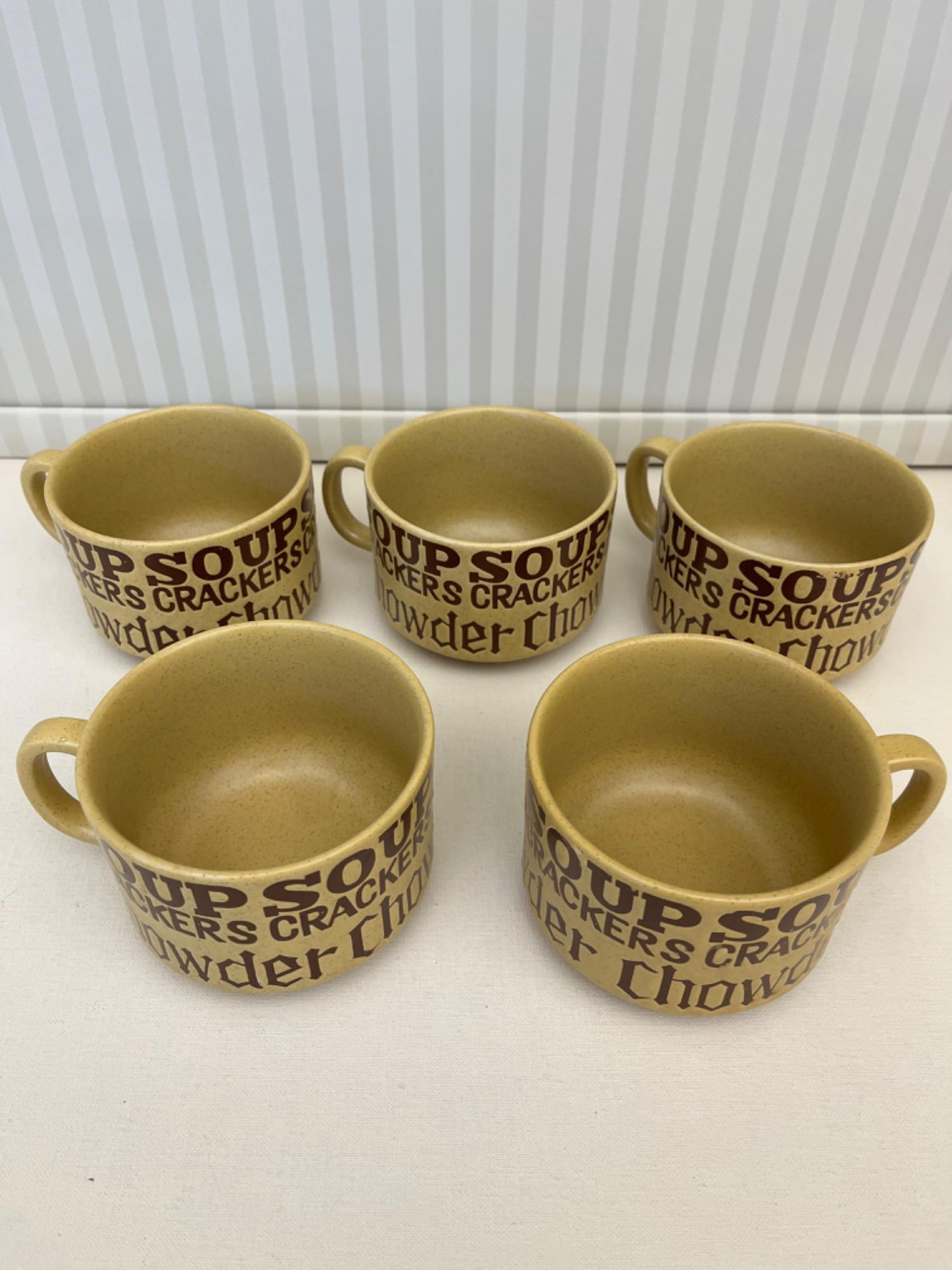 Midcentury 1970s Soup & Crackers Stoneware Mugs