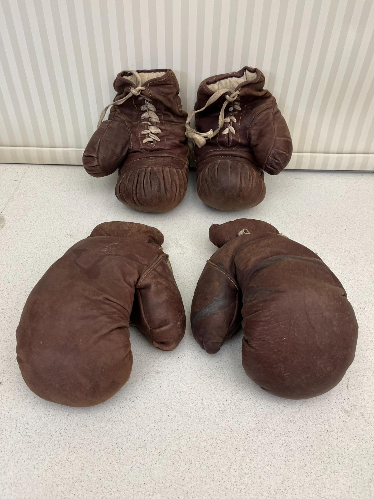 Lot # 190 - 2 Pr. Antique Leather Yale Pro Boxing Gloves