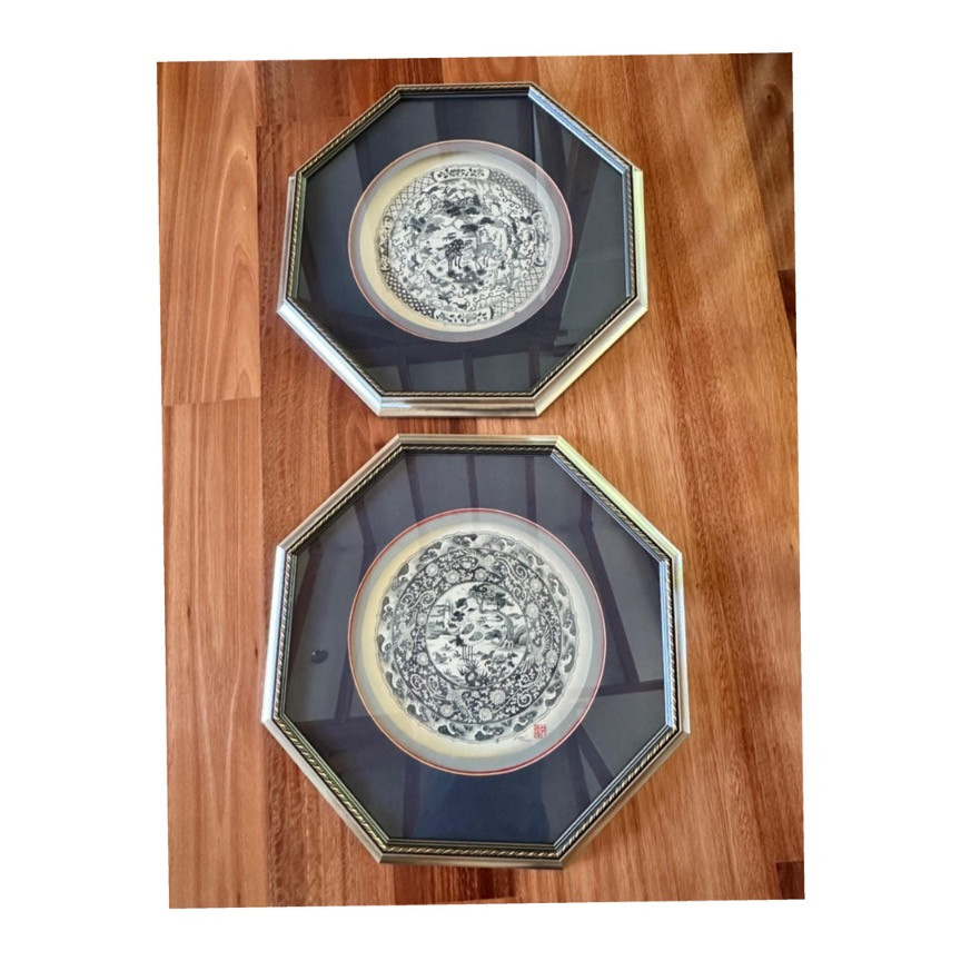 Octagon Framed Bombay Company Blue & White Deer and Cranes Limited Prints.