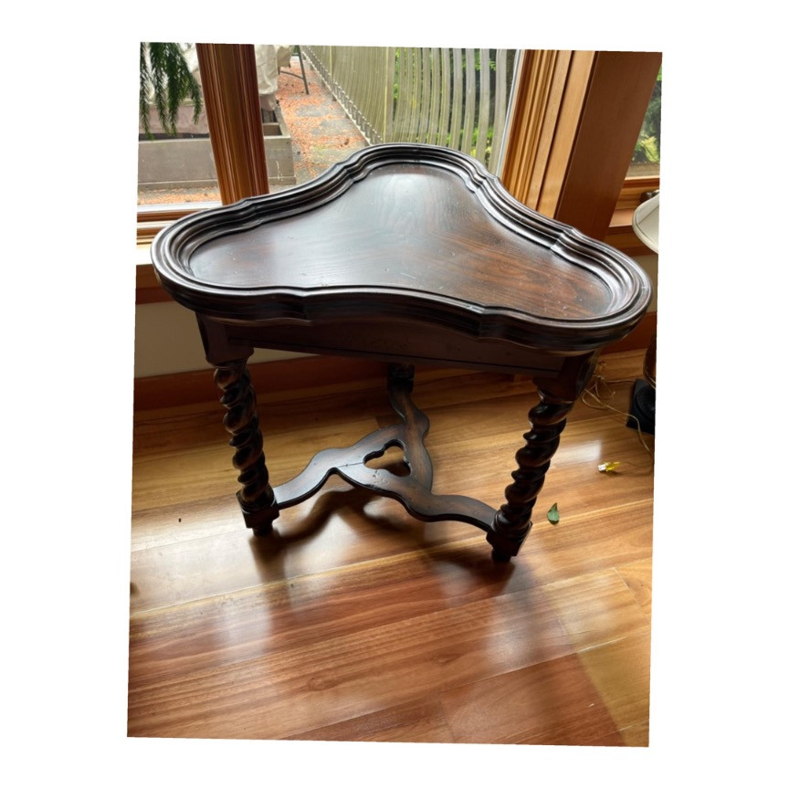 Lot # 9 - Solid Wood Triangular Side Table With Barley Twist Legs