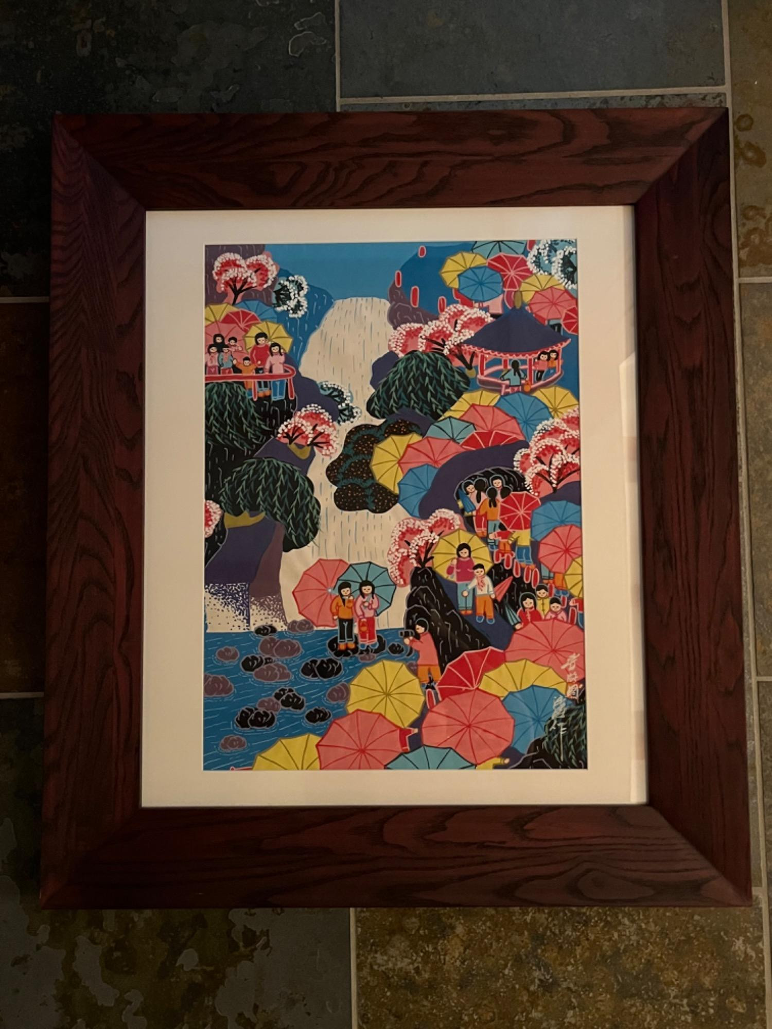 Original Folk Art Chinese Painting-Artist Signed. Colorful original painting signed by artist. Wooden frame.