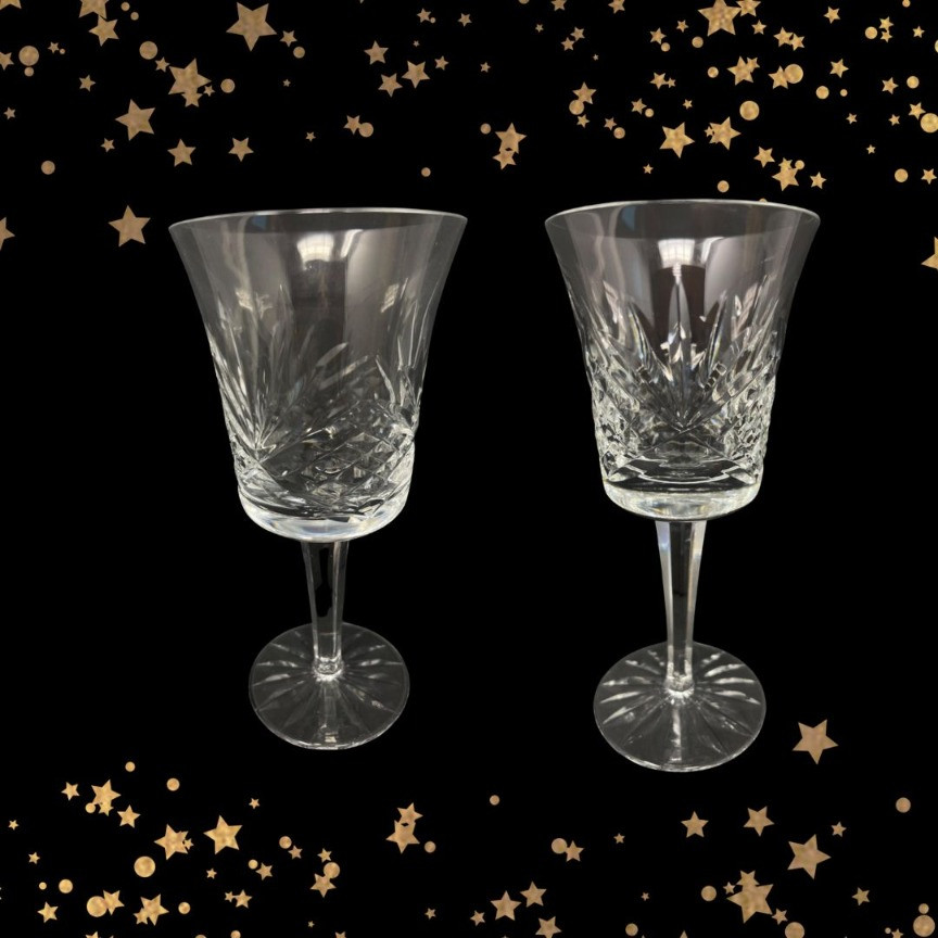 Astral Questa Cut Glass Stemware-Two Sizes- 19 Total. Criss cross & fan pattern. Matches pattern of Tiffany glasses in previous lot. (9) Small : 6.5 inches tall (10) Large glasses: 7 inches tall