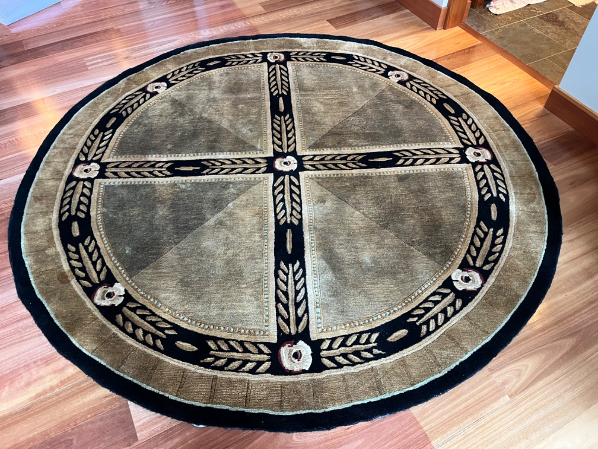 Lot # 167 - Circular Beige and Black Modern Rug with Geometric and Foliage Design