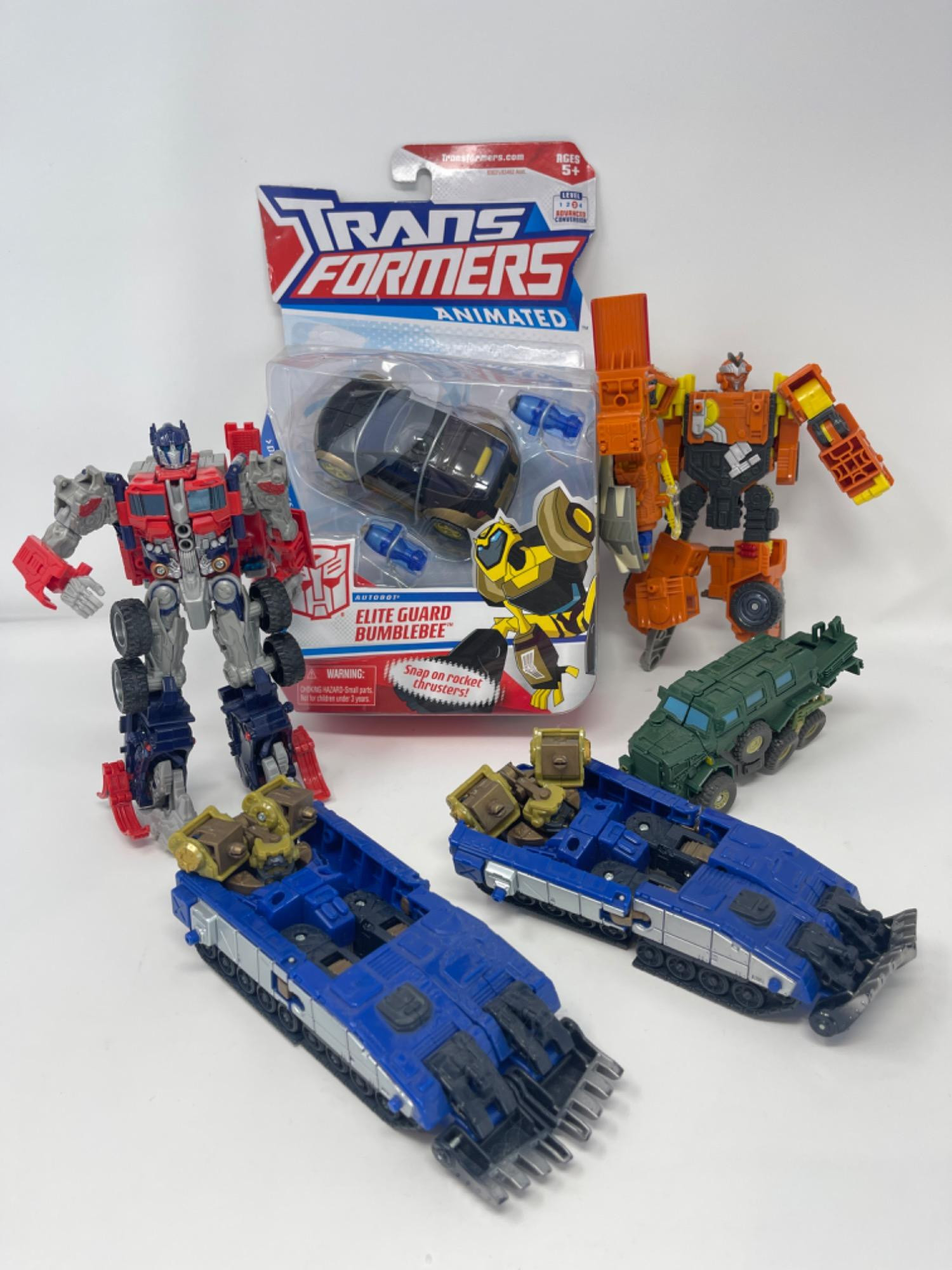 Hasbro Transformers - Cyber Voyager, Optimus Prime & More! Unknown completeness of all pieces. Shortest: 2” H Tallest: 12” H