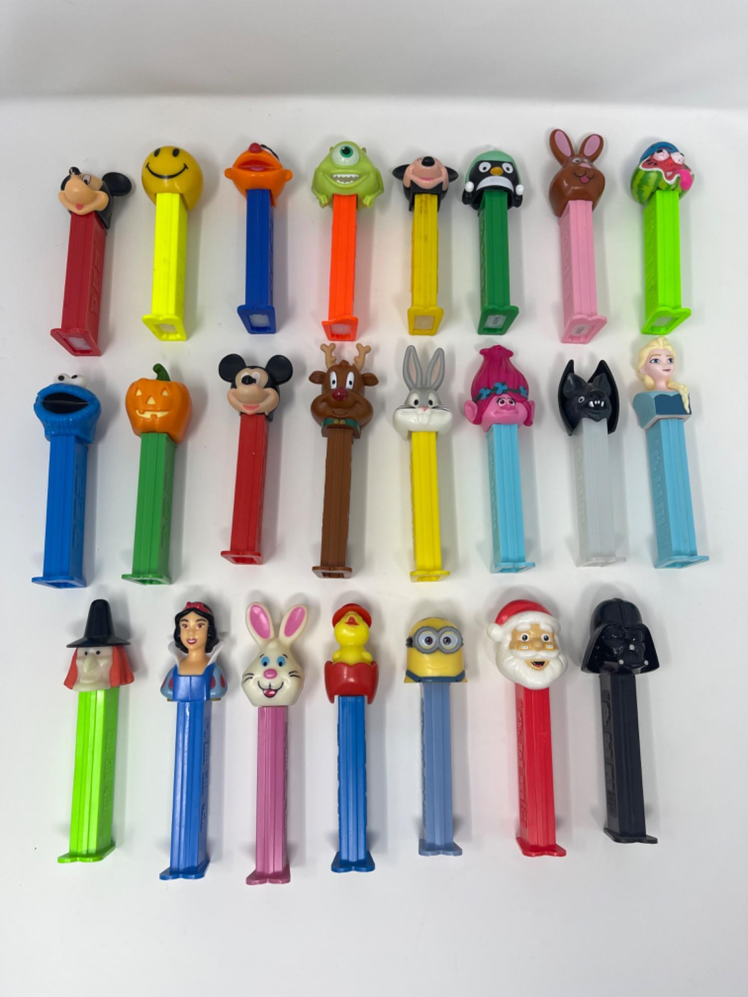 Collectible Pez Dispensers - Some Vintage Tallest: 5" H All need cleaning. Some wearing off of design and scratches to all pieces.