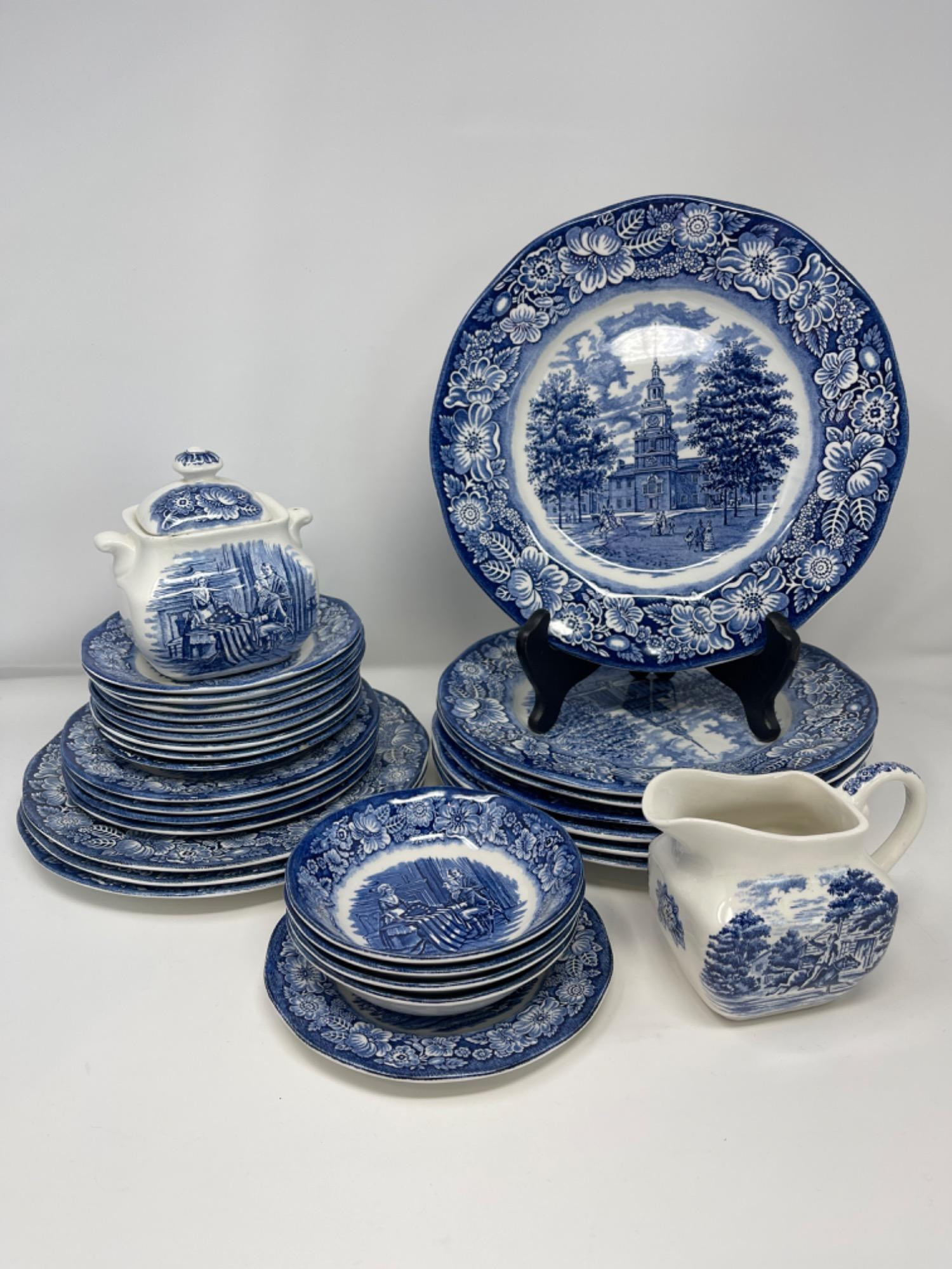 Lot # 88 - Vintage Liberty Blue Historic Colonial Scenes Dishes