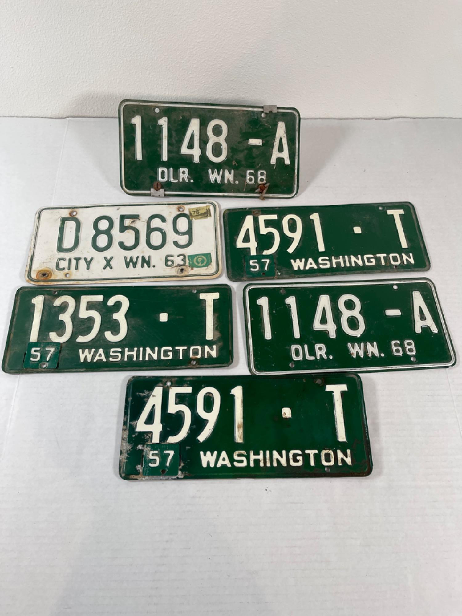Vintage License Plates All are used, dirty and tarnished. Need cleaning