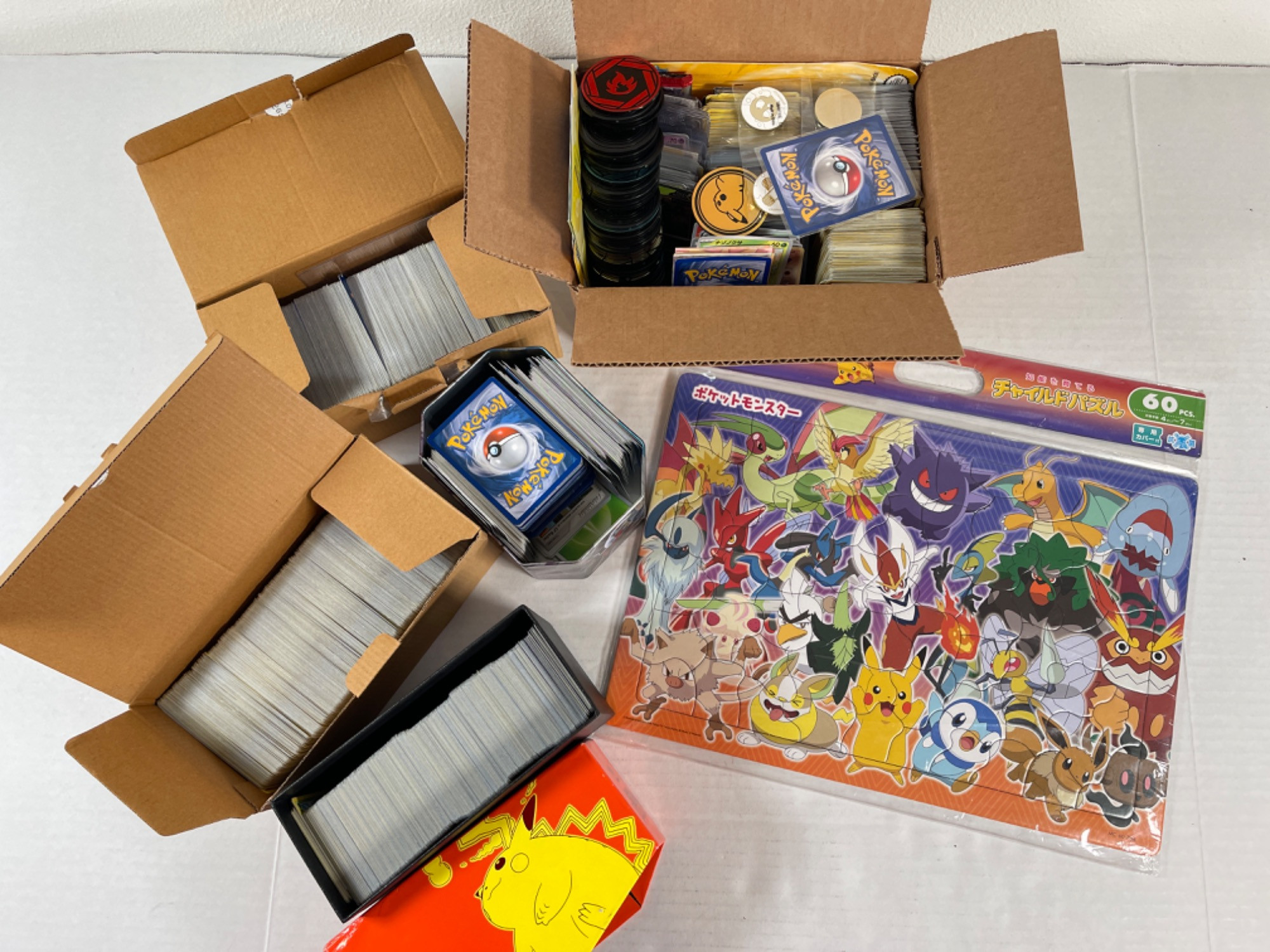 Tons of Pokemon Cards, Coins & Puzzle! Not all included cards have been pulled out for inspection. More to find! Unclear if cards correlate to box.