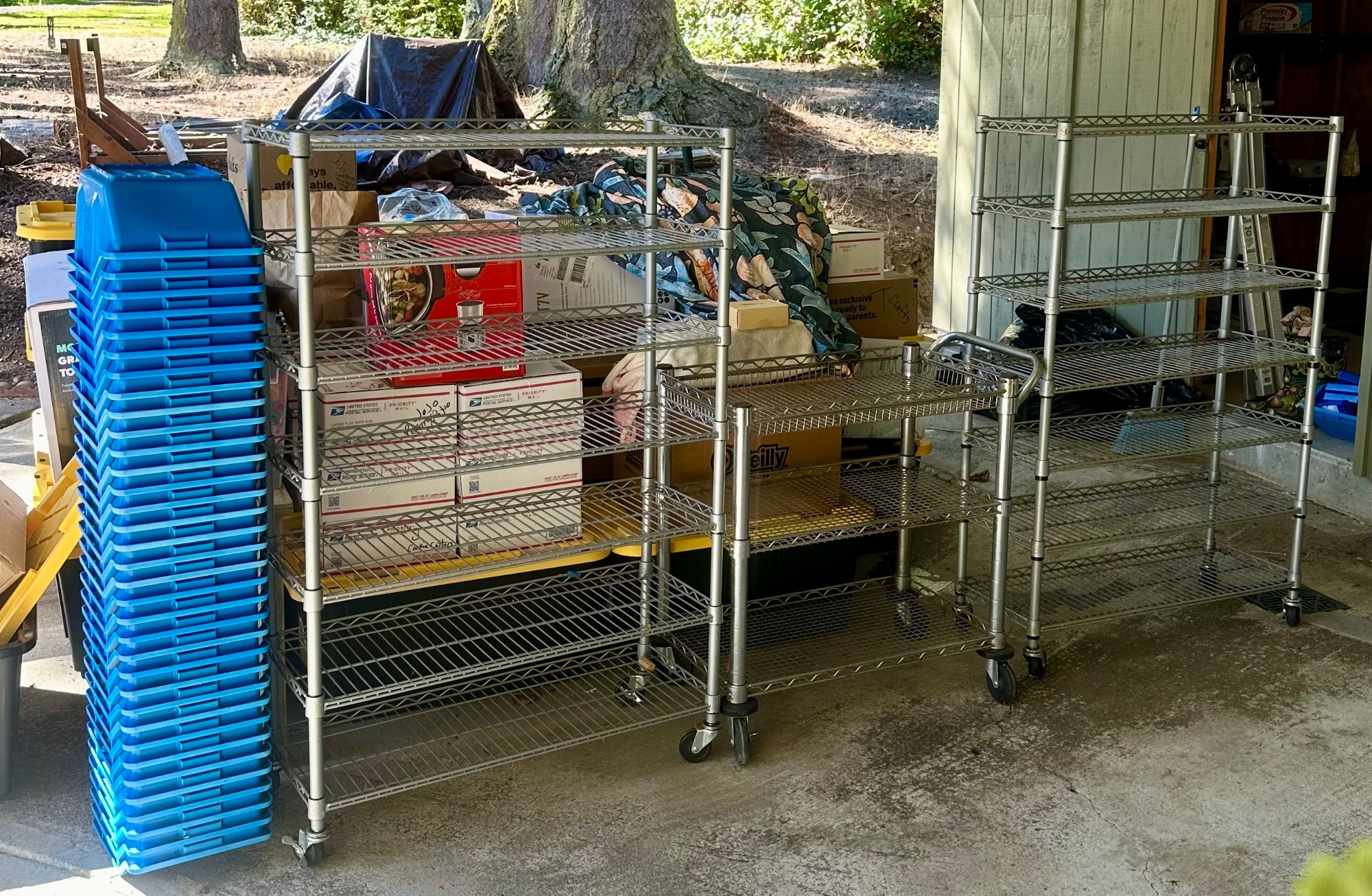 Lot # 74 - Shelving on Wheels / Storage Bins