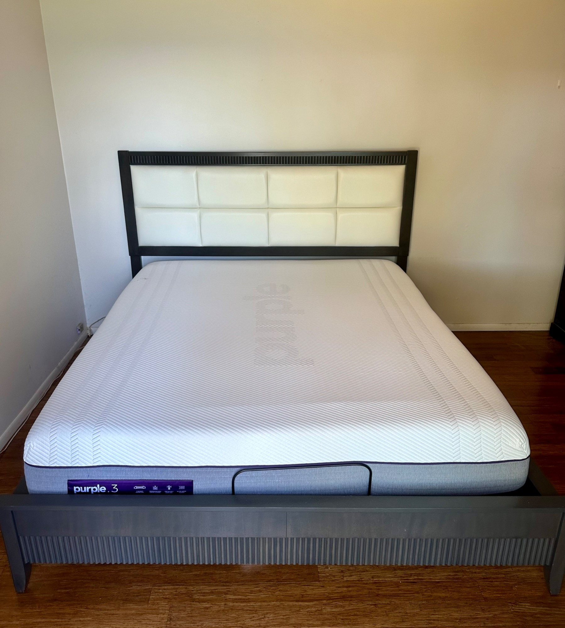 Lot # 87 - California King Adjustable Bed Frame and Purple Mattress