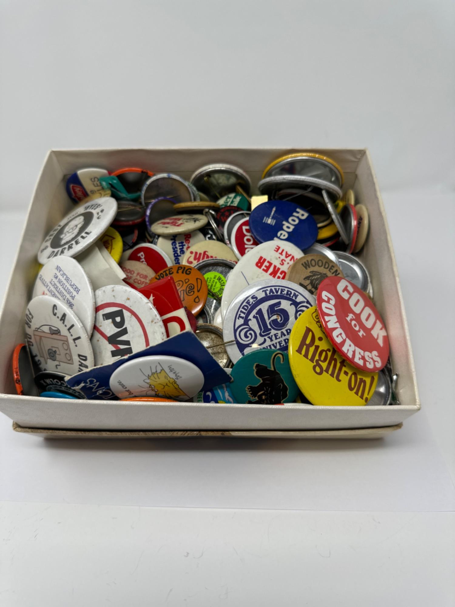 Several Vintage Buttons- Campaign and Vintage Novelties.