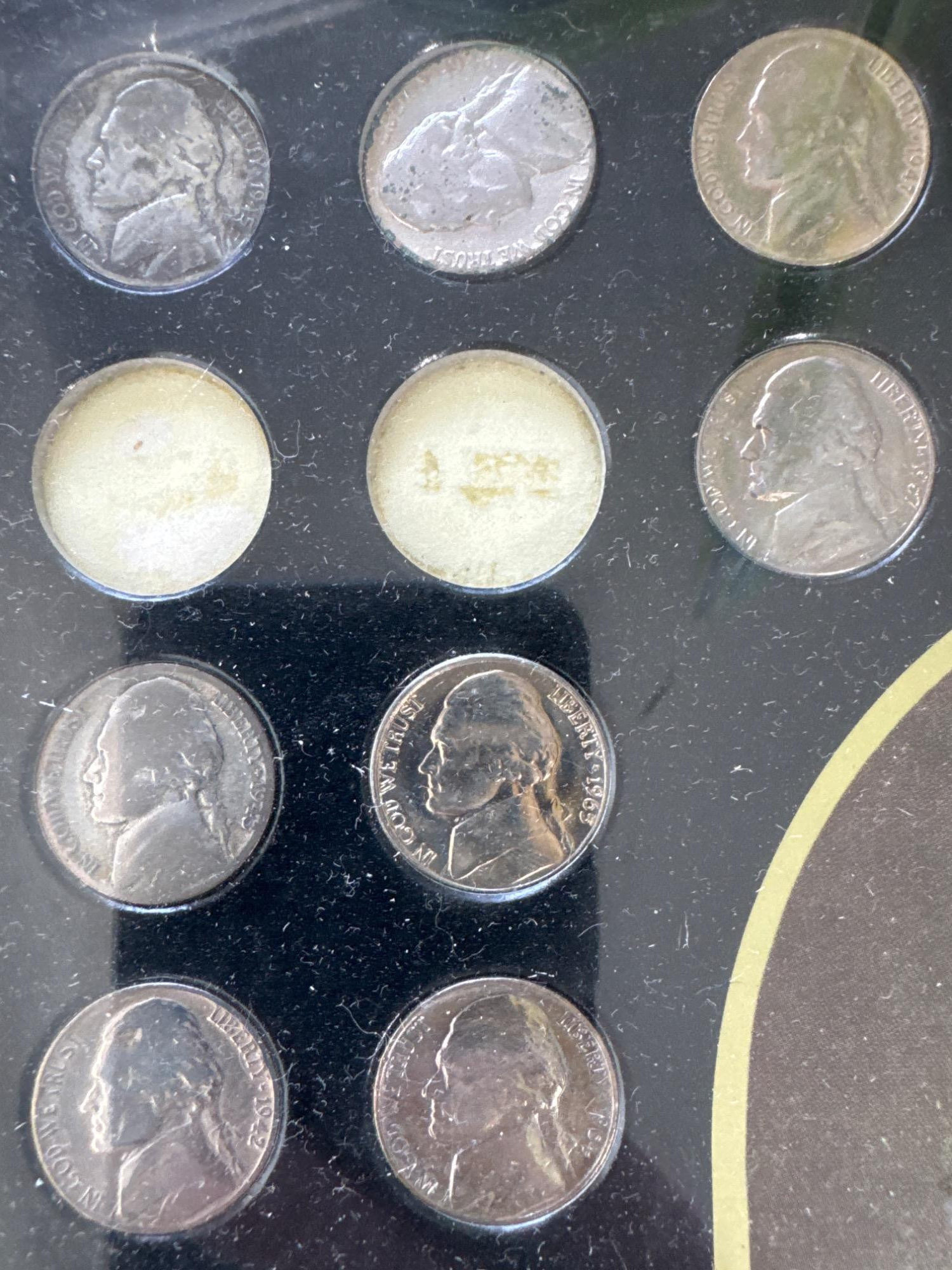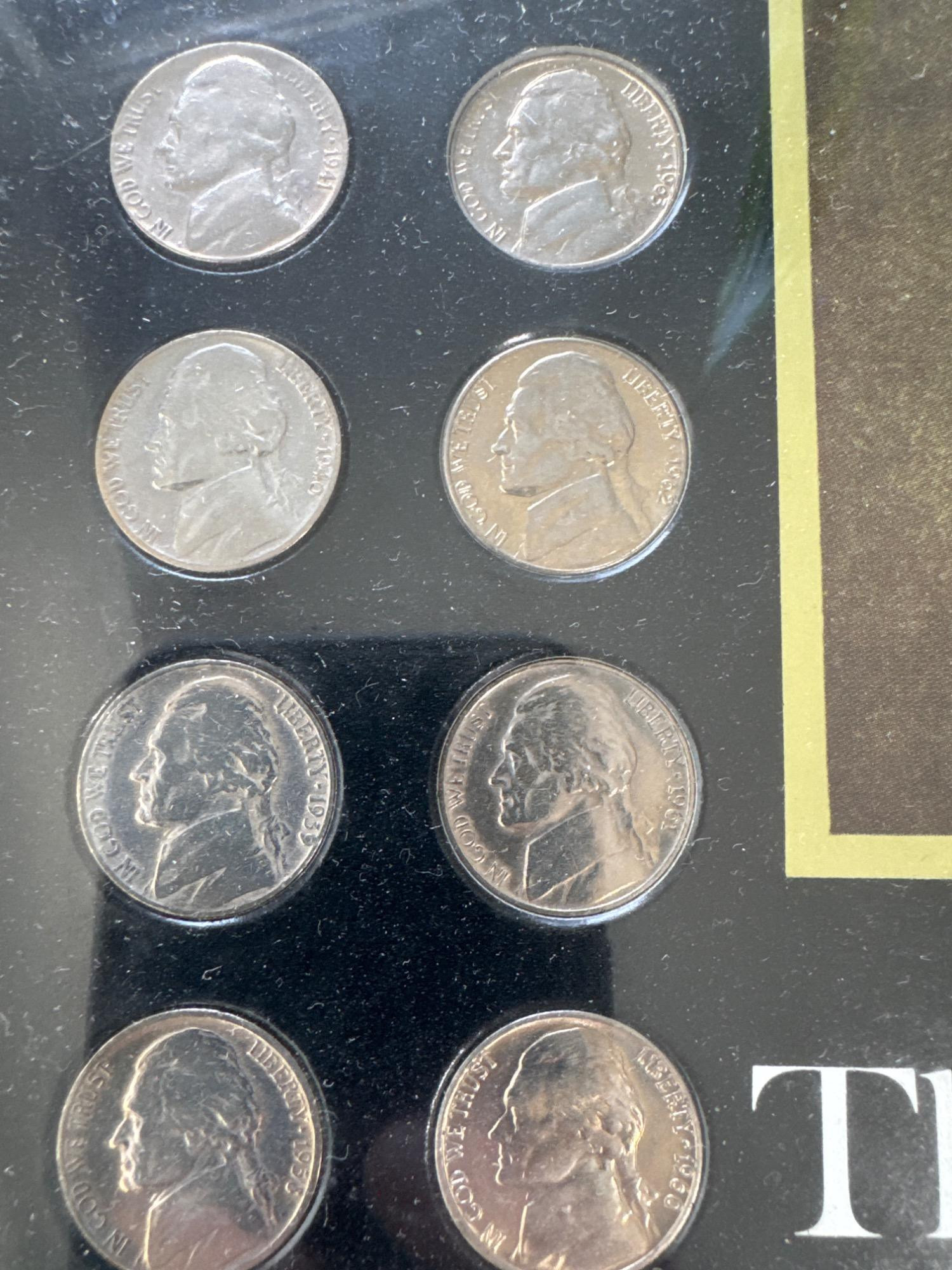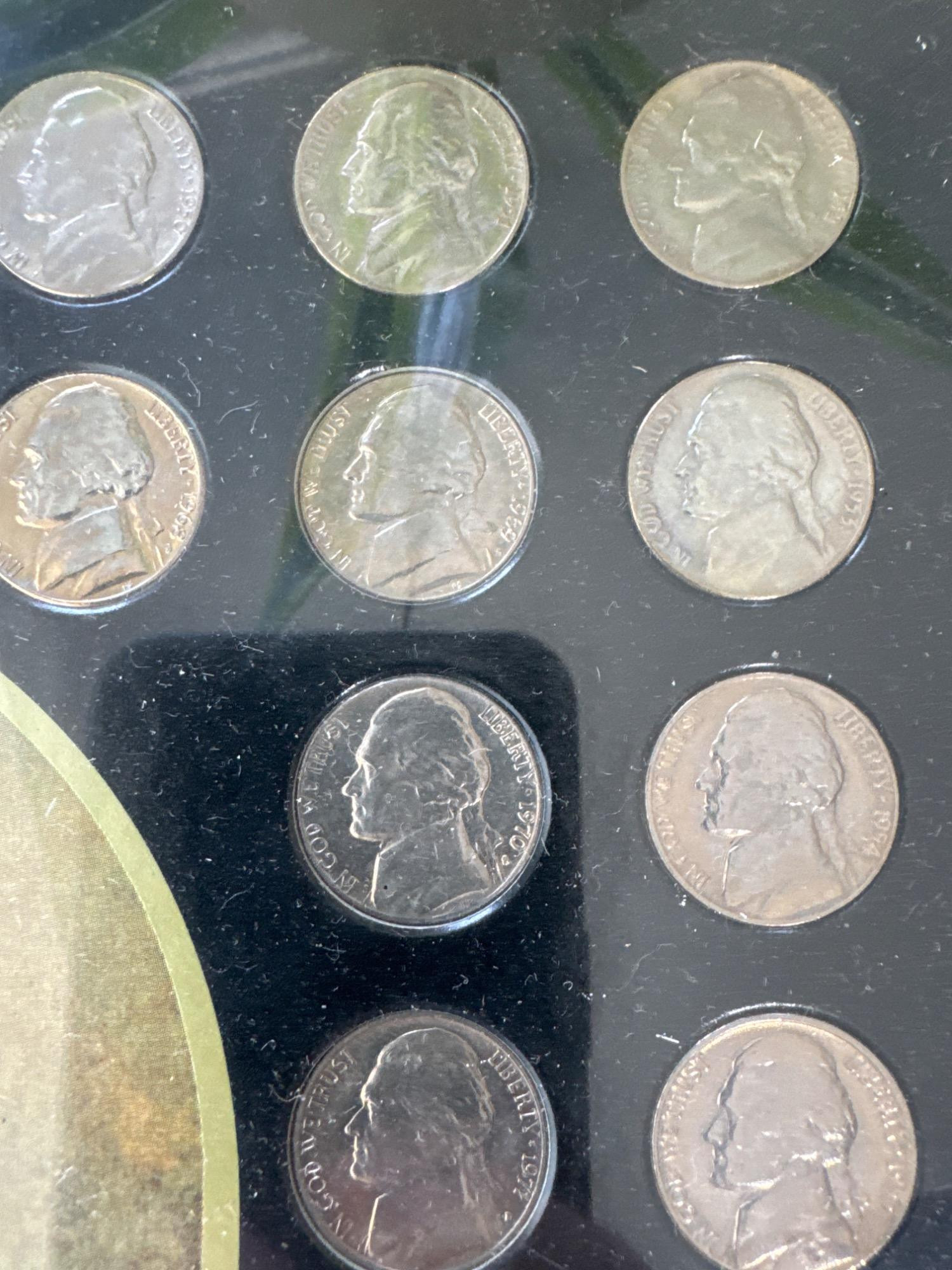 17” T x 14” W Oldest nickel is 1938 and ranges to 1975. Some years are missing. 36 nickels total