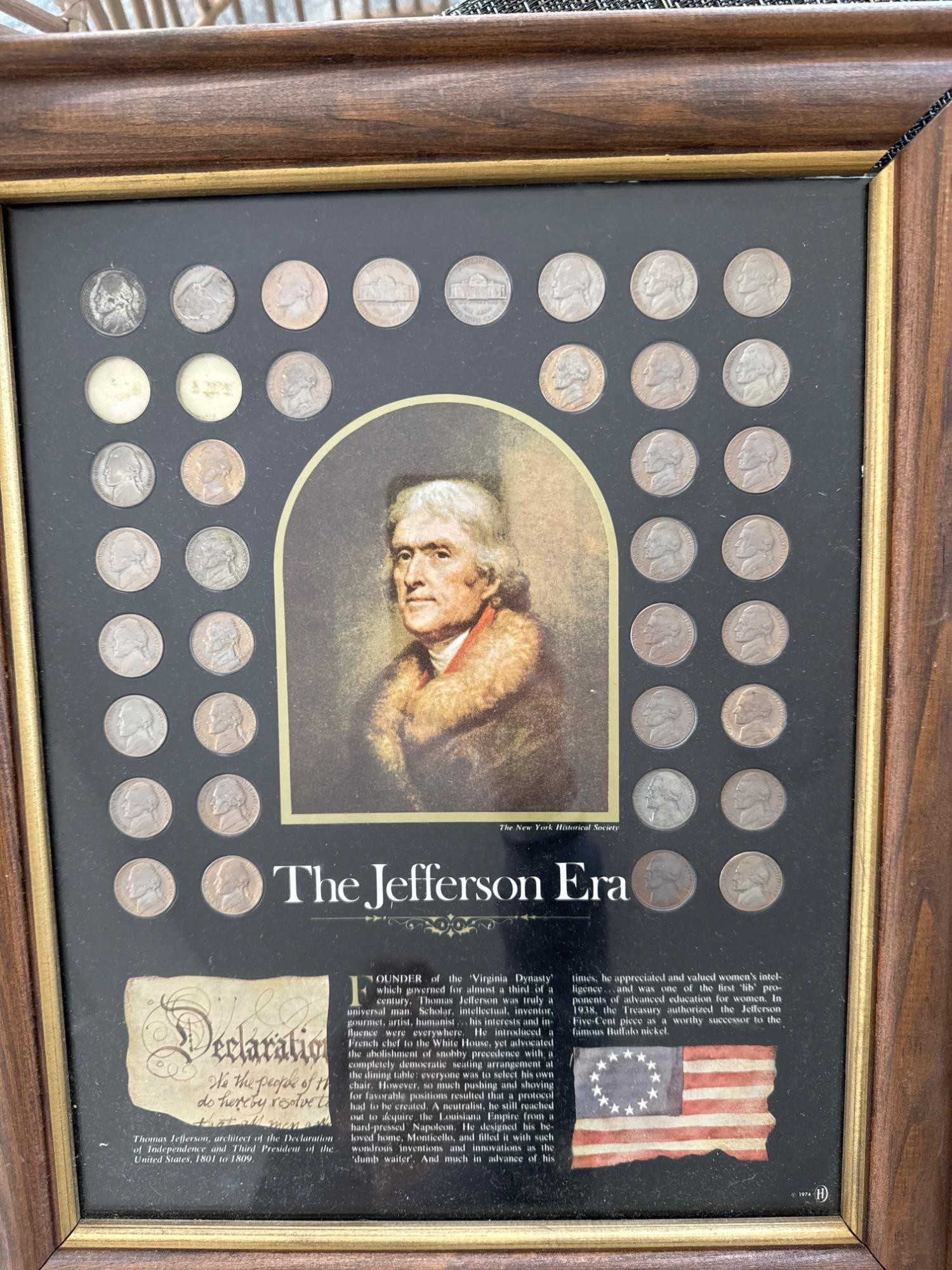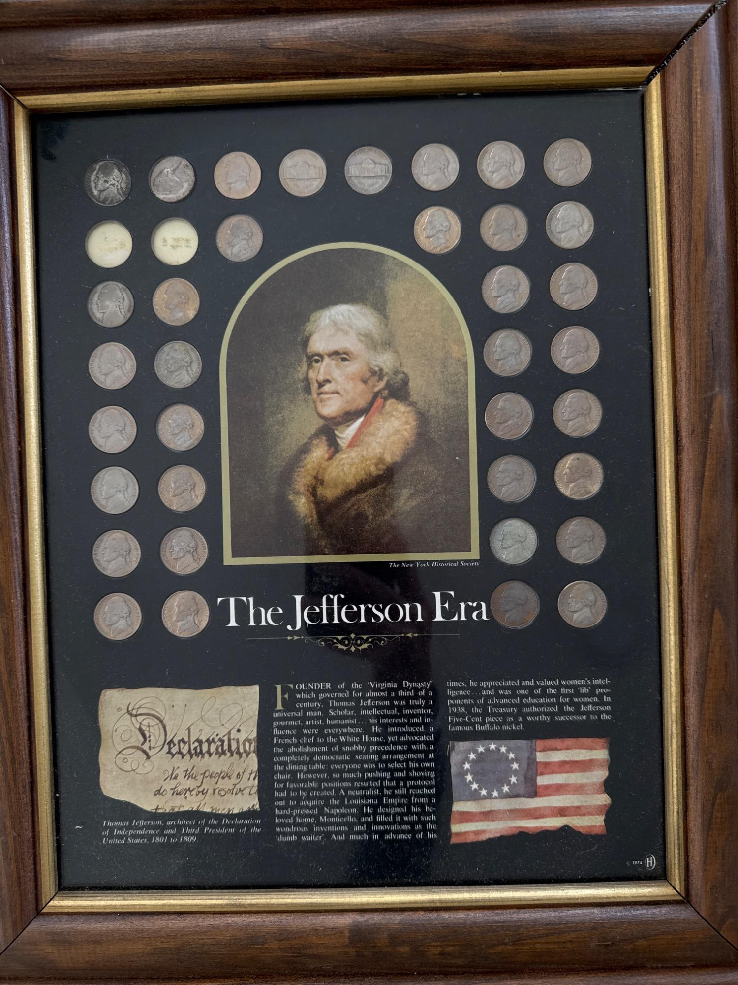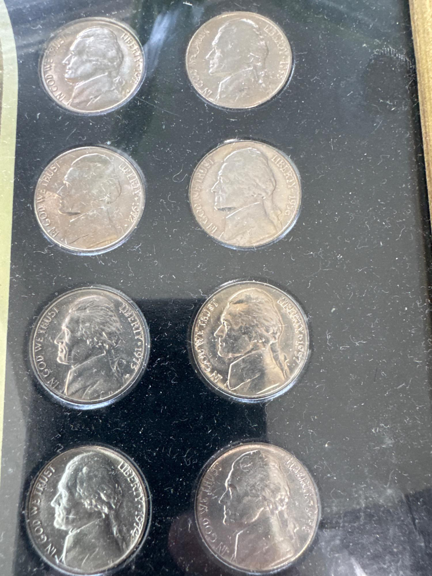 17” T x 14” W Oldest nickel is 1938 and ranges to 1975. Some years are missing. 36 nickels total
