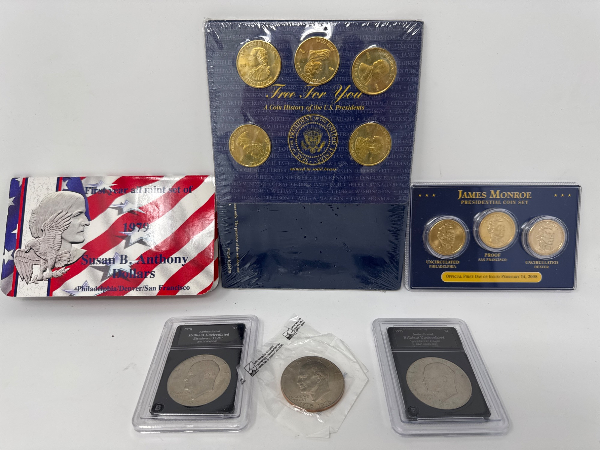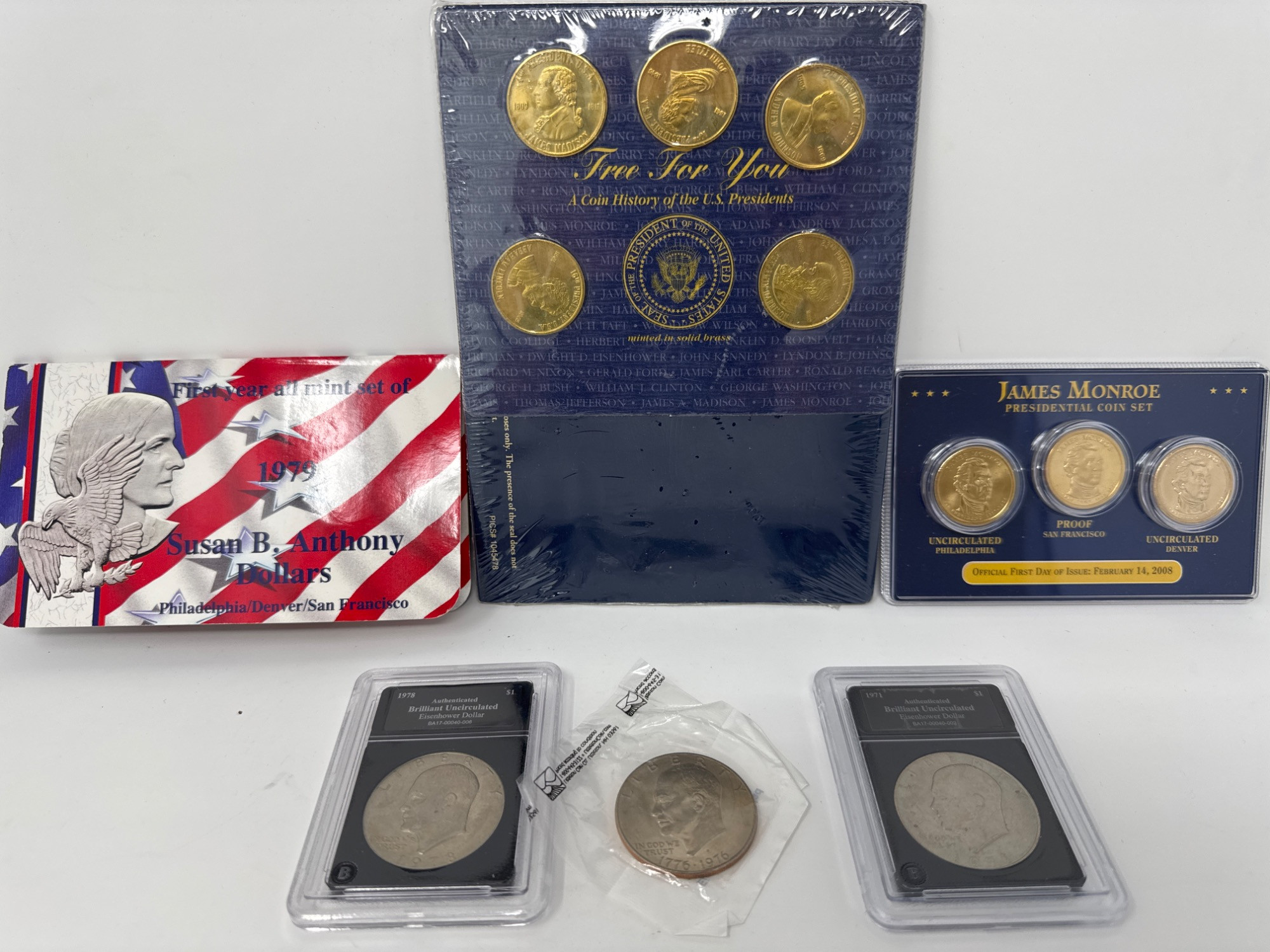 Susan B Anthony Mint Set 1979 US President Set ( Presidents Madison, Tyler, LB Johnson, Lincoln and Harrison) James Monroe Presidential Set Eisenhower Dollars - 3 1971, 1978 and 1776-1976