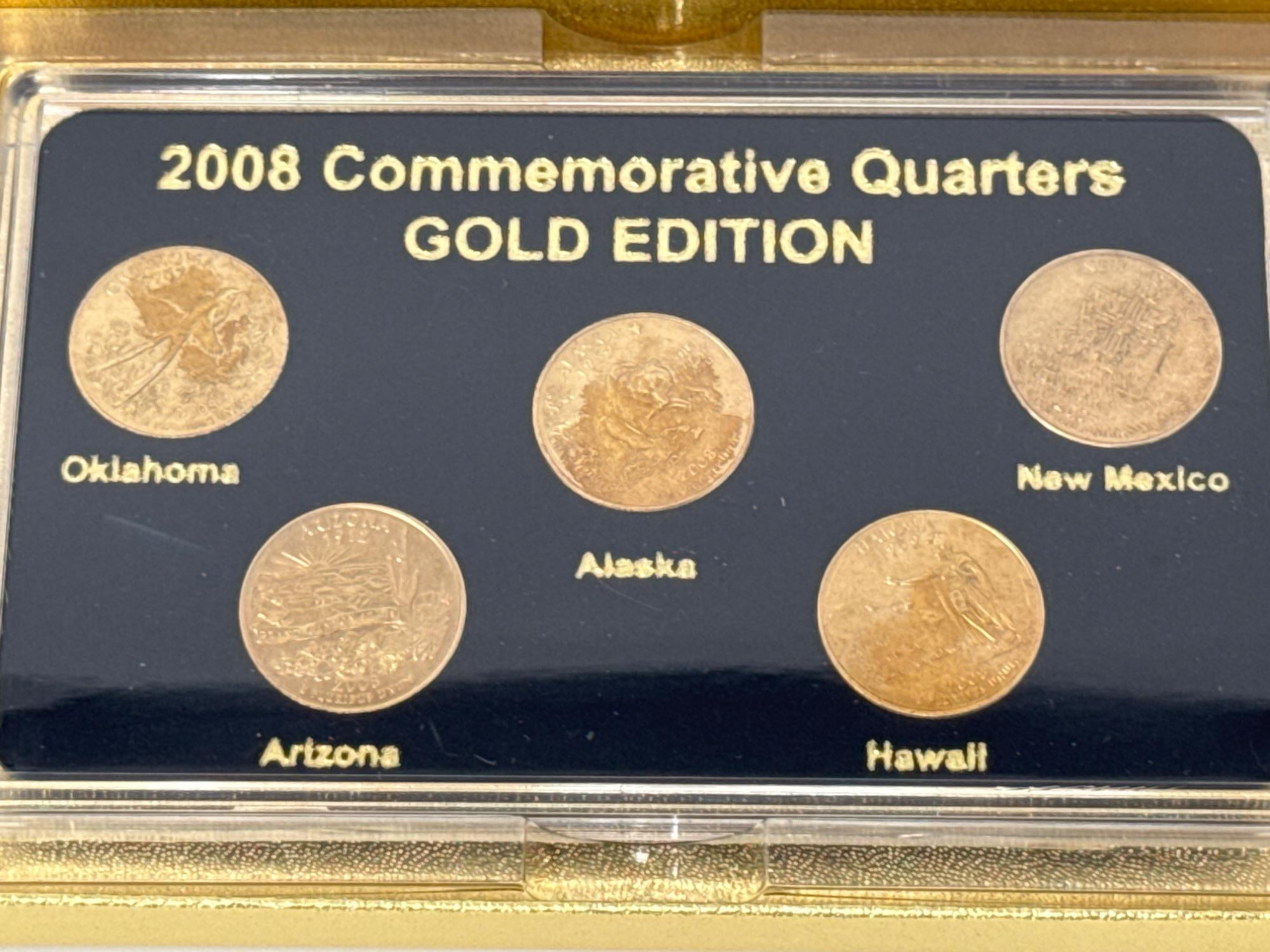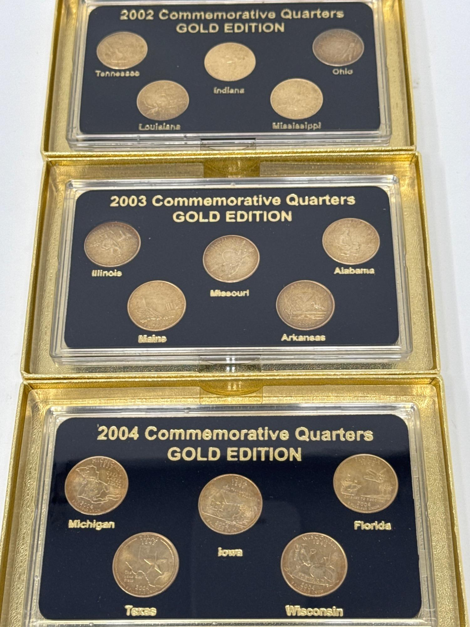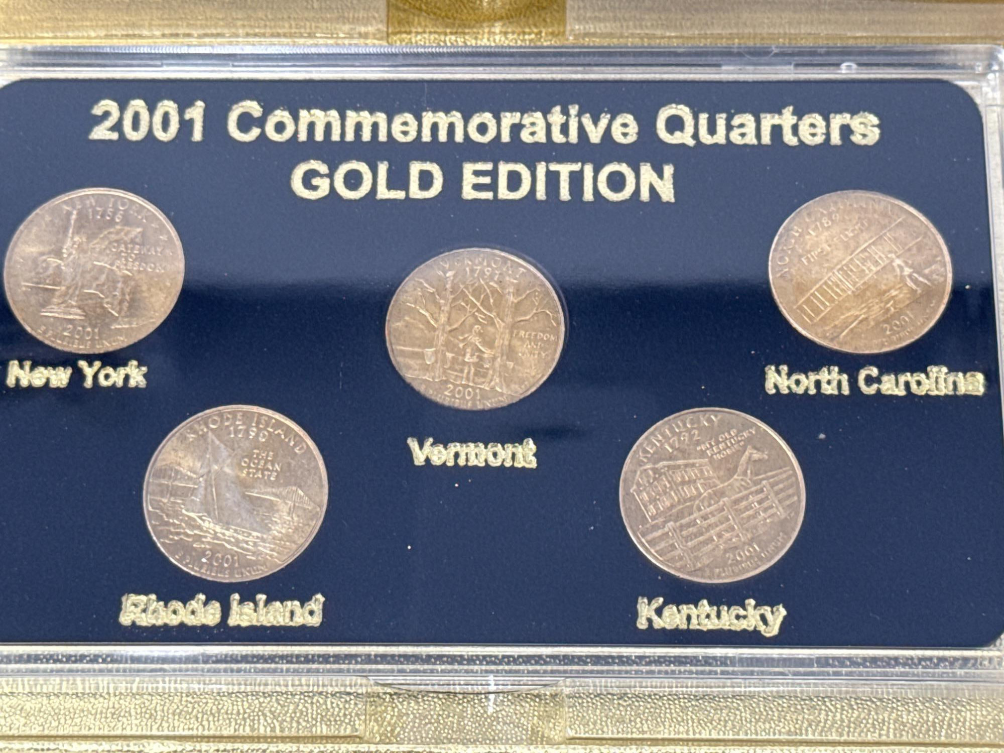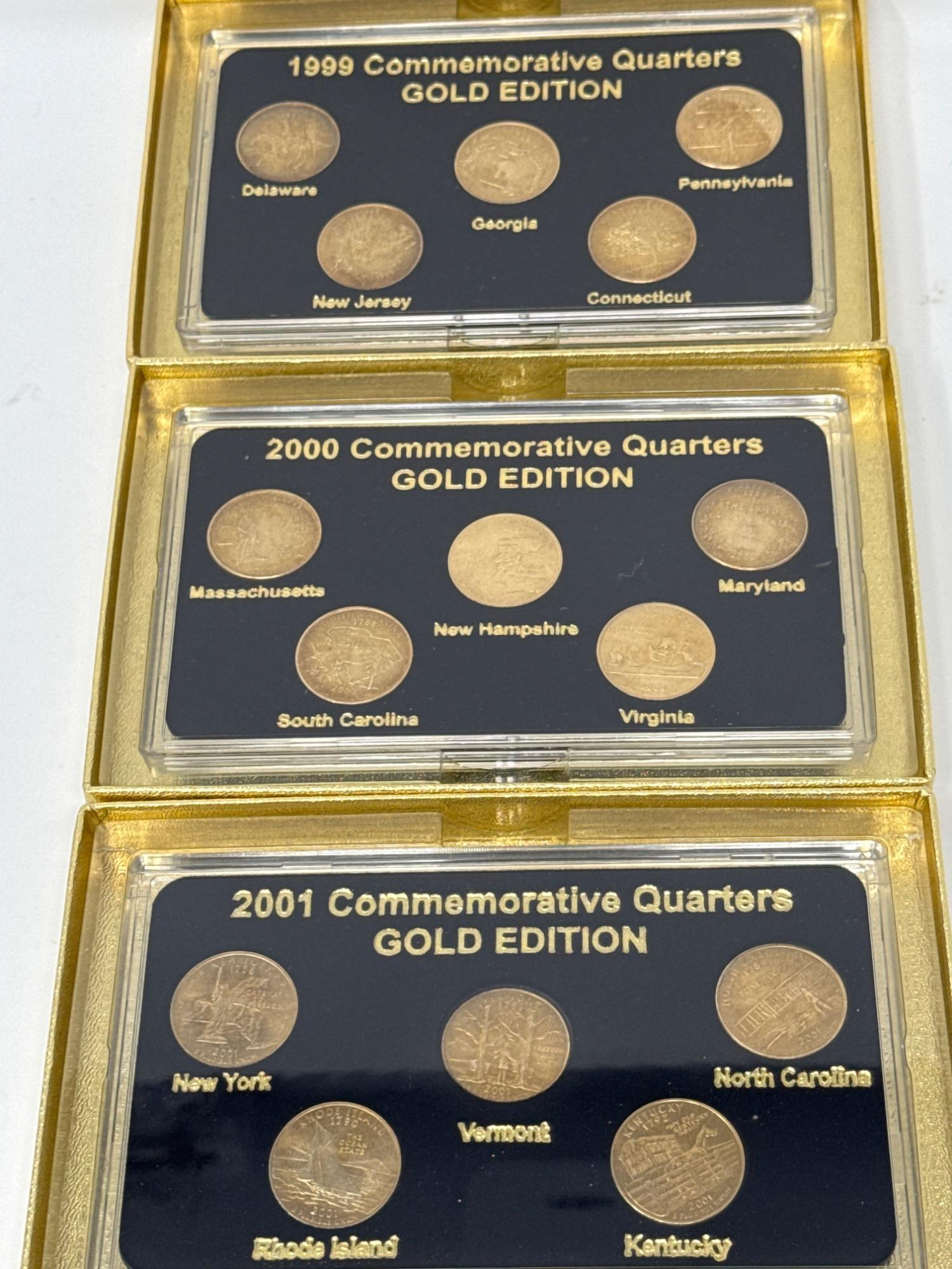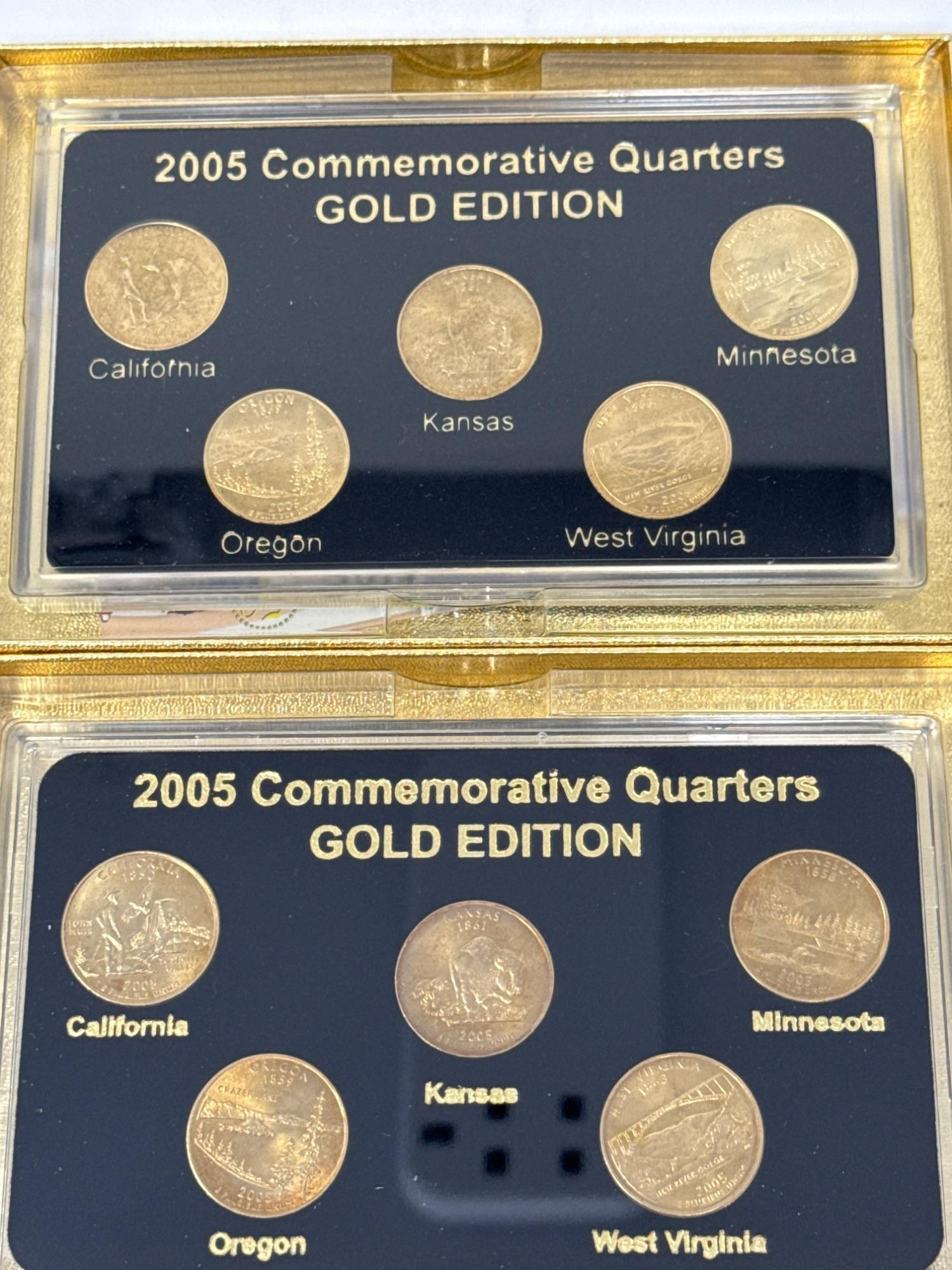 50 State Commemorative Quarters Gold Edition Years 1999-2005 , 2007 and 2008 2 boxes of 2005 All boxes include Dated cards to match the Quarters