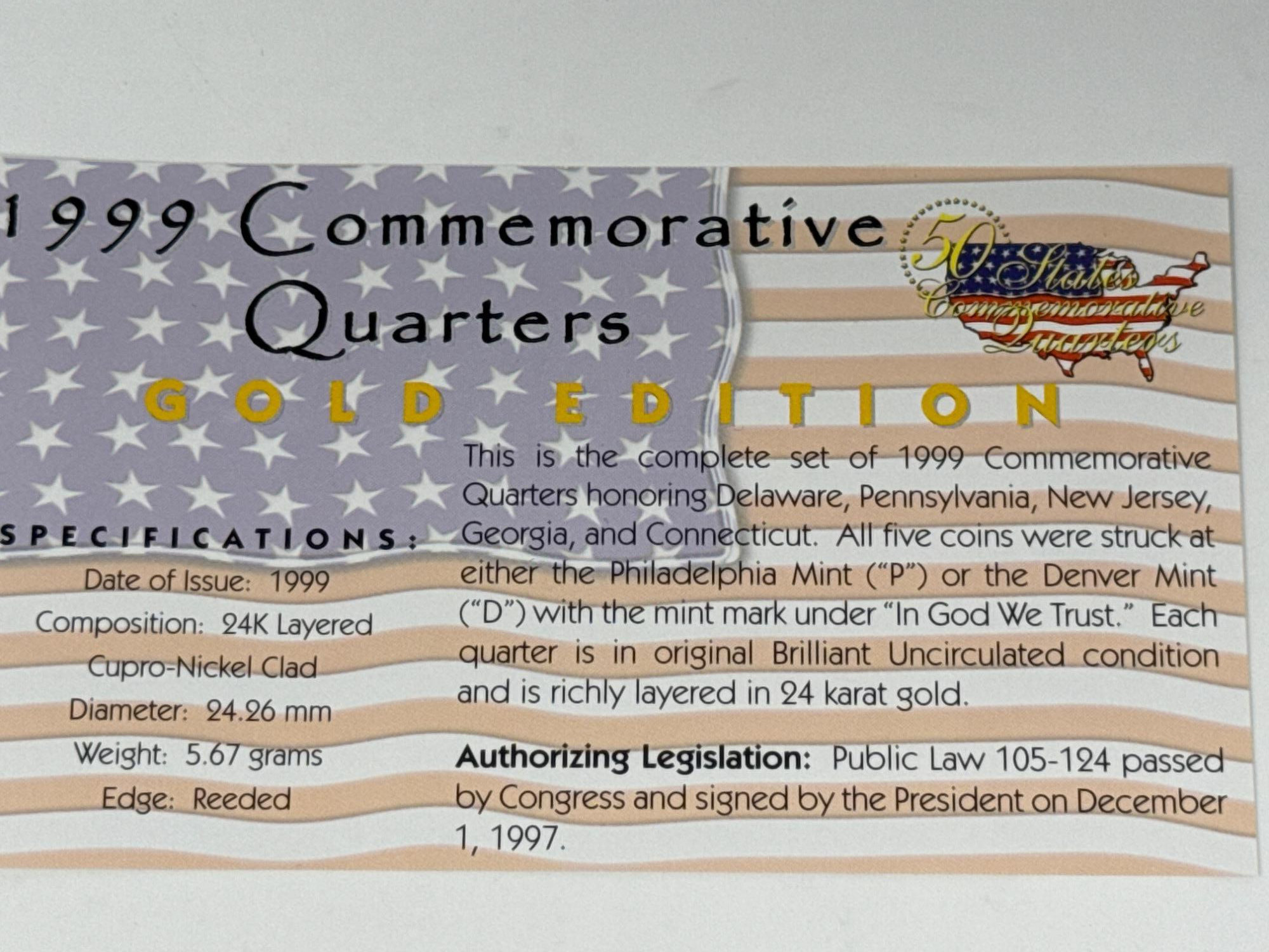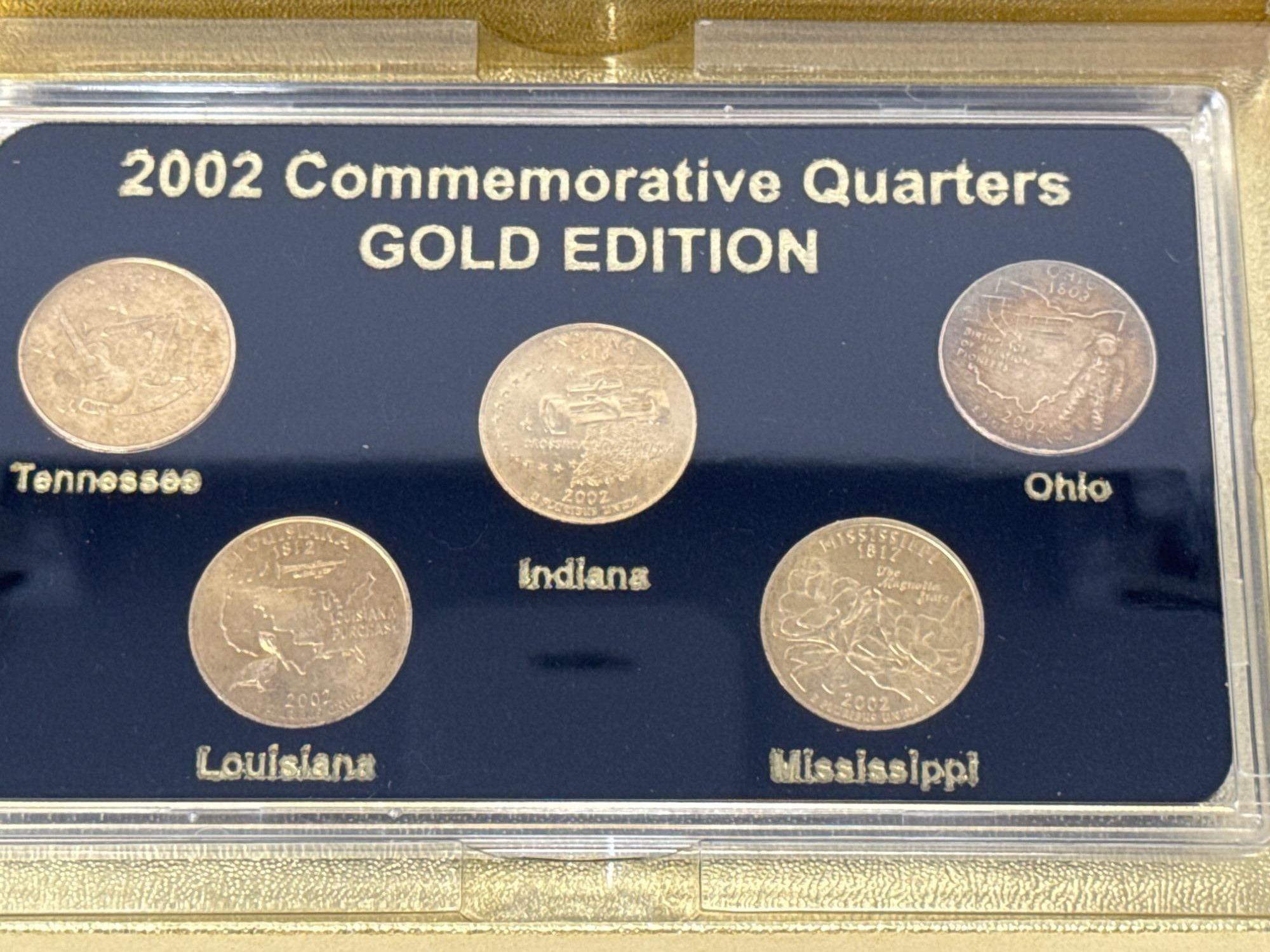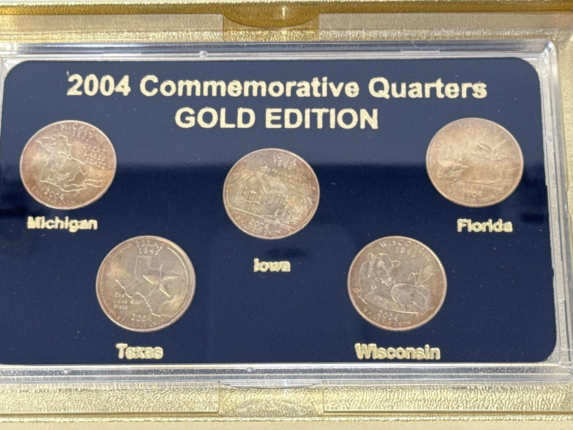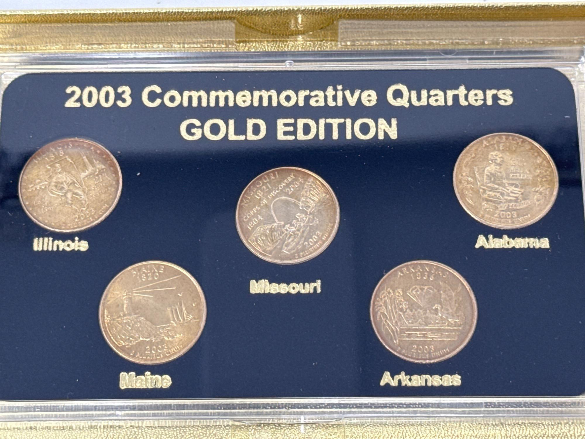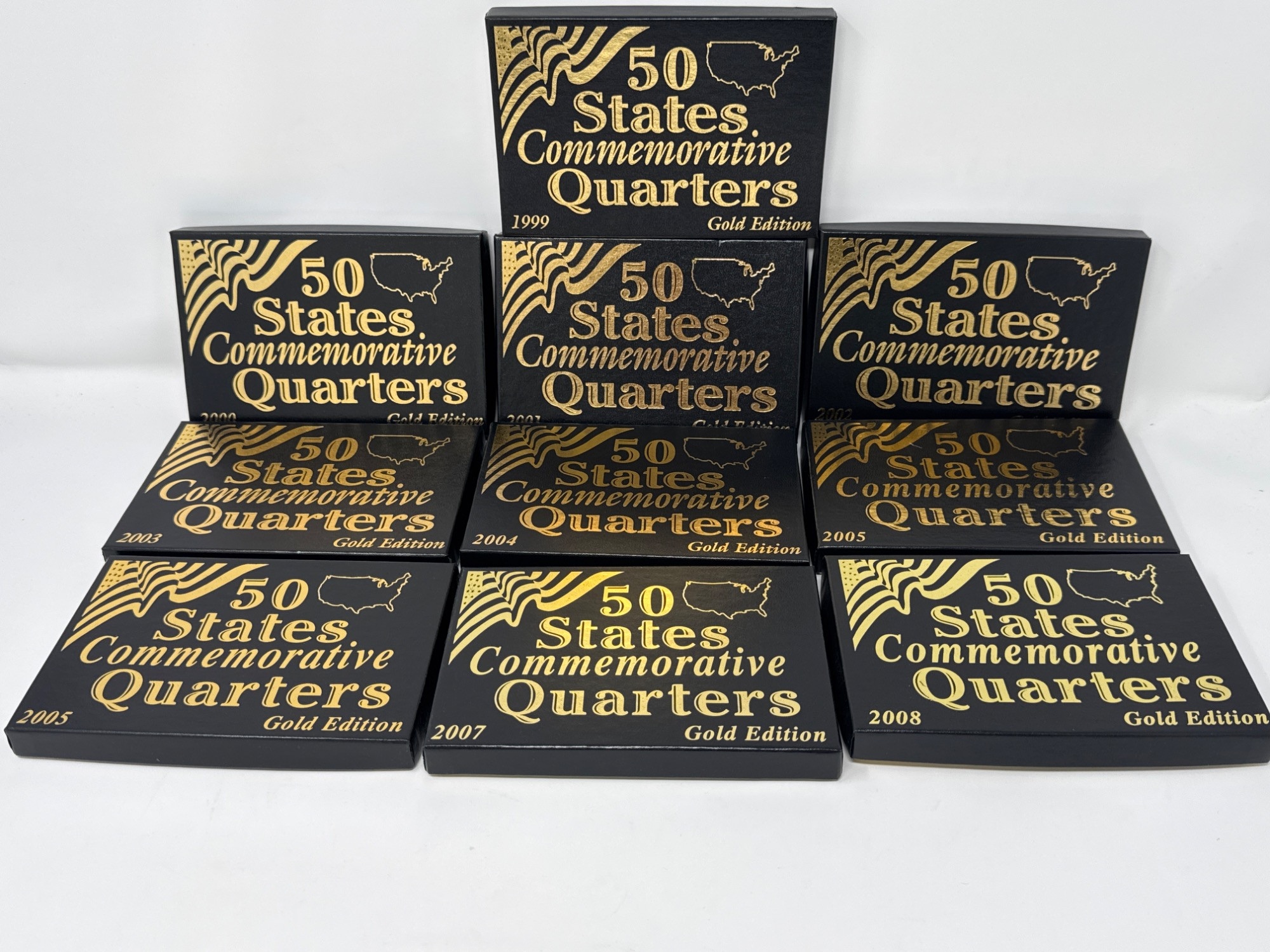 50 State Commemorative Quarters Gold Edition Years 1999-2005 , 2007 and 2008 2 boxes of 2005 All boxes include Dated cards to match the Quarters
