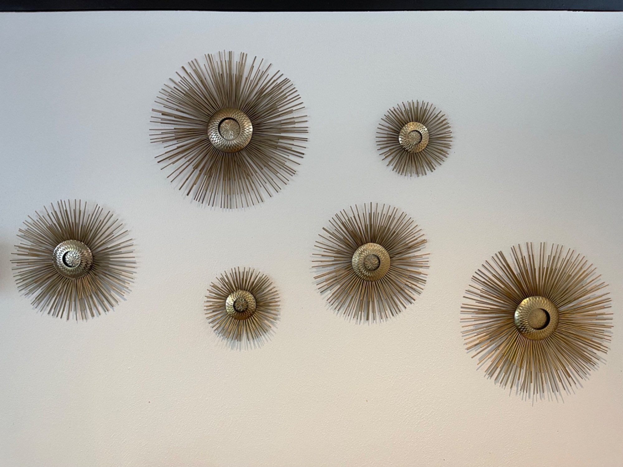 Contemporary Gold Wall Sunburst Decor Pieces All need cleaning, but in great condition. Smallest: 7.5" W Largest: 16" W
