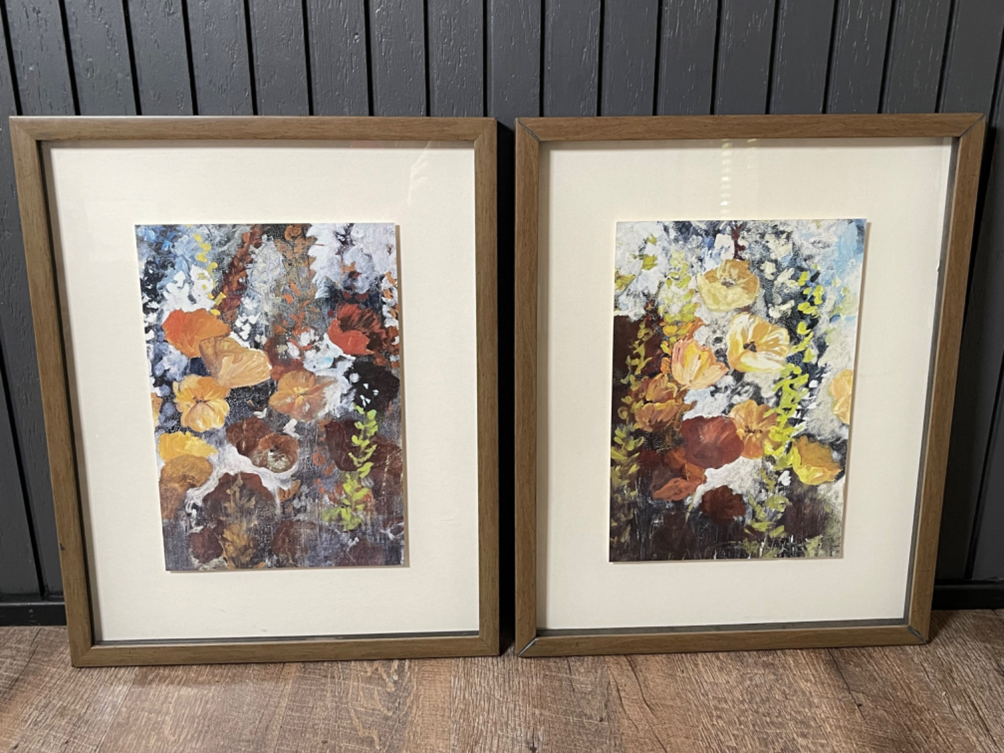 (2) Floral Designs Direct Framed Prints Great condition, very minimal damages to frame. Some ripping on back of frames.