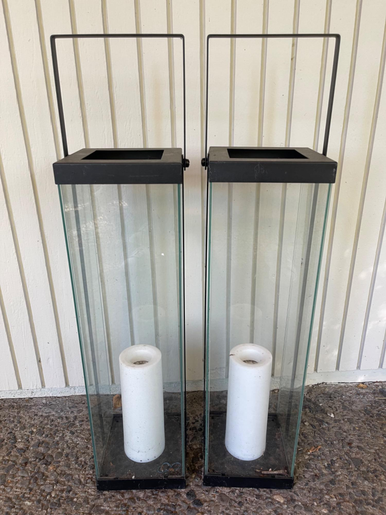 (2) Standing Lantern Candle Holders Used, needs cleaning. See photos.