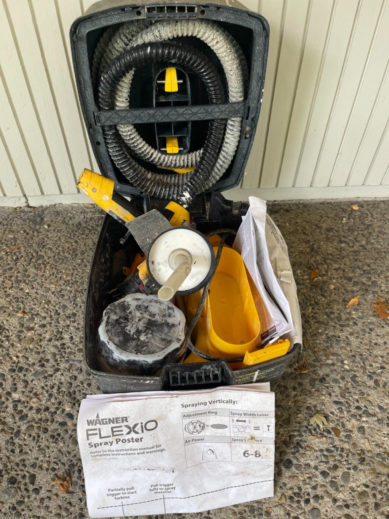 Wagner Flexio 890 Paint Sprayer In Carry Case Wagner 0529021 FLEXiO 890 Stationary HVLP Paint Sprayer, Sprays Unthinned Latex, Includes two Nozzles, iSpray Nozzle and Detail Finish Nozzle, Complete Adjustability for All Needs. UNTESTED.