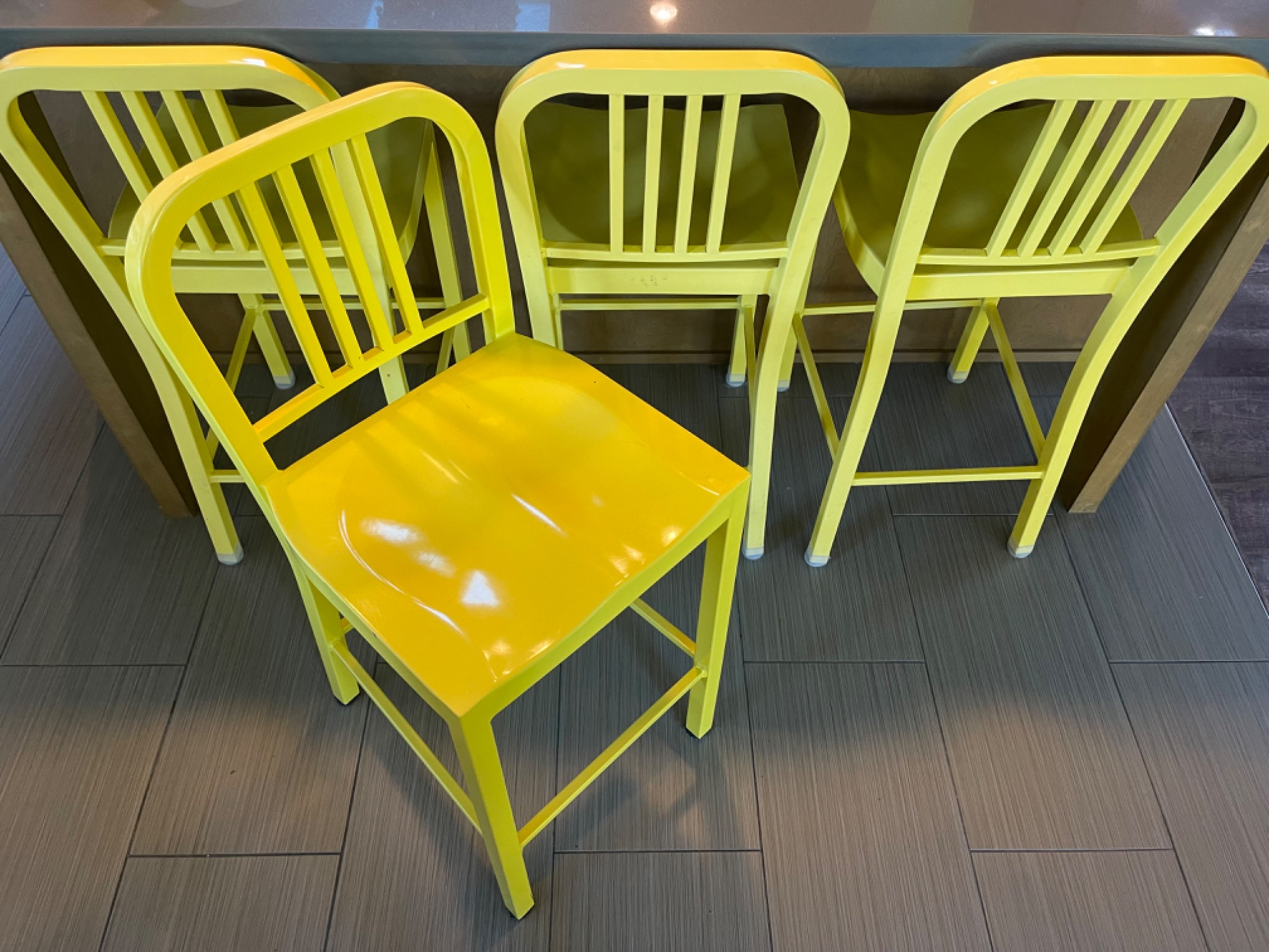 Lot # 115 - Four Bright Yellow Metal Counter Chairs