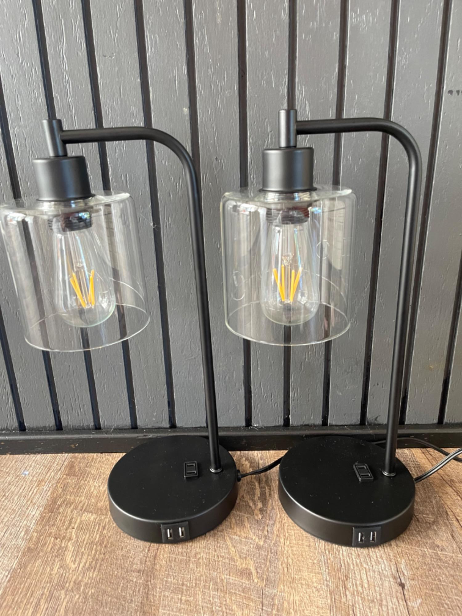 Industrial Style Dimmable Table Lamps Both in good working condition. Outlet plug in on lamps not tested.