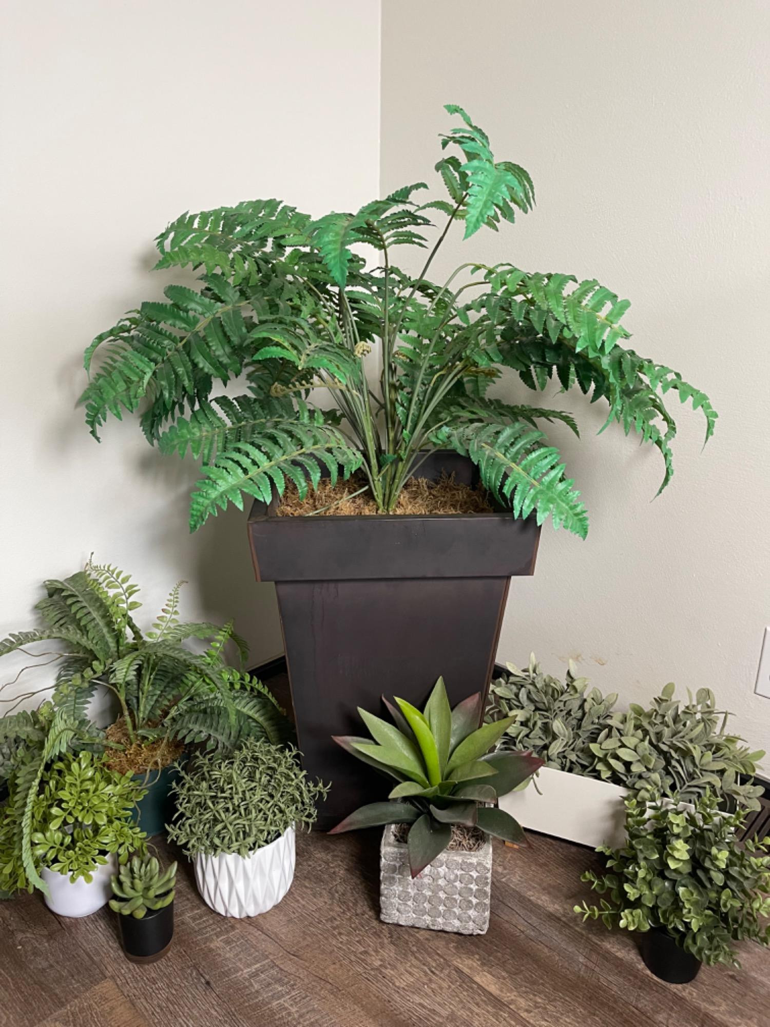 Trendy Faux Plants Ensemble-Succulent and Ferns Smallest: 4.5" H Largest: 36" H