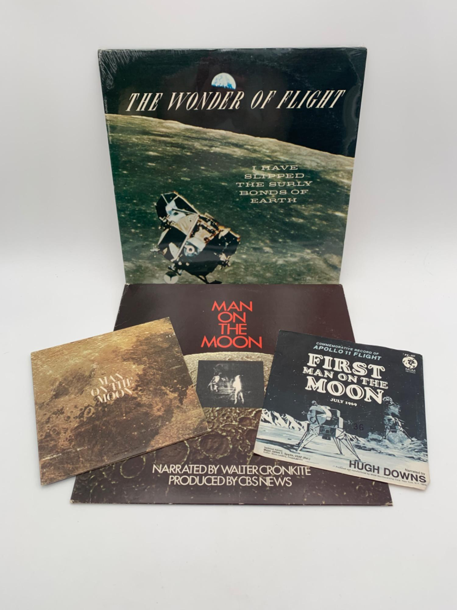 from the man who made space a reality in everyone’s living room each evening. No egregious scrathes noted on record. Pair of EPs “Man on the Moon” narrated by
