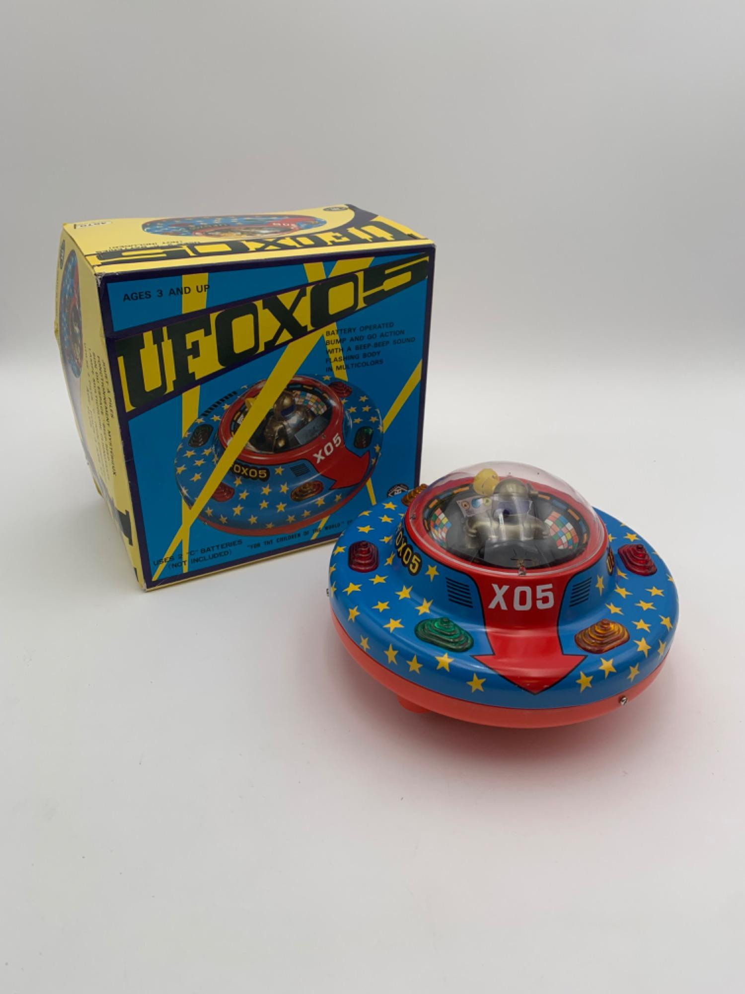 Lot # 77 - UFO-X-05 Litho Spinning Saucer – Masudaya – Excellent
