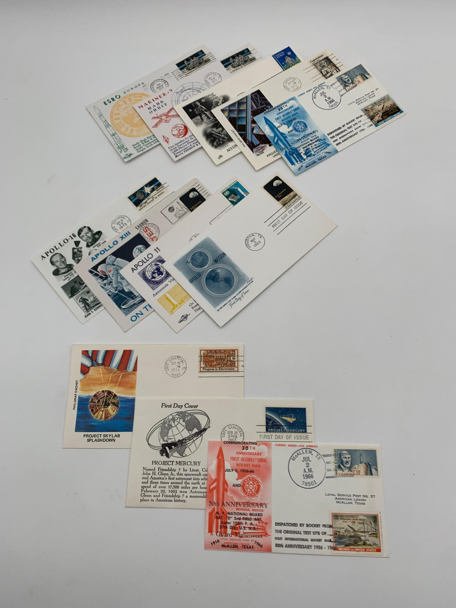 satellites and culturally significant milestones (astronauts visit the UN). Envelopes
