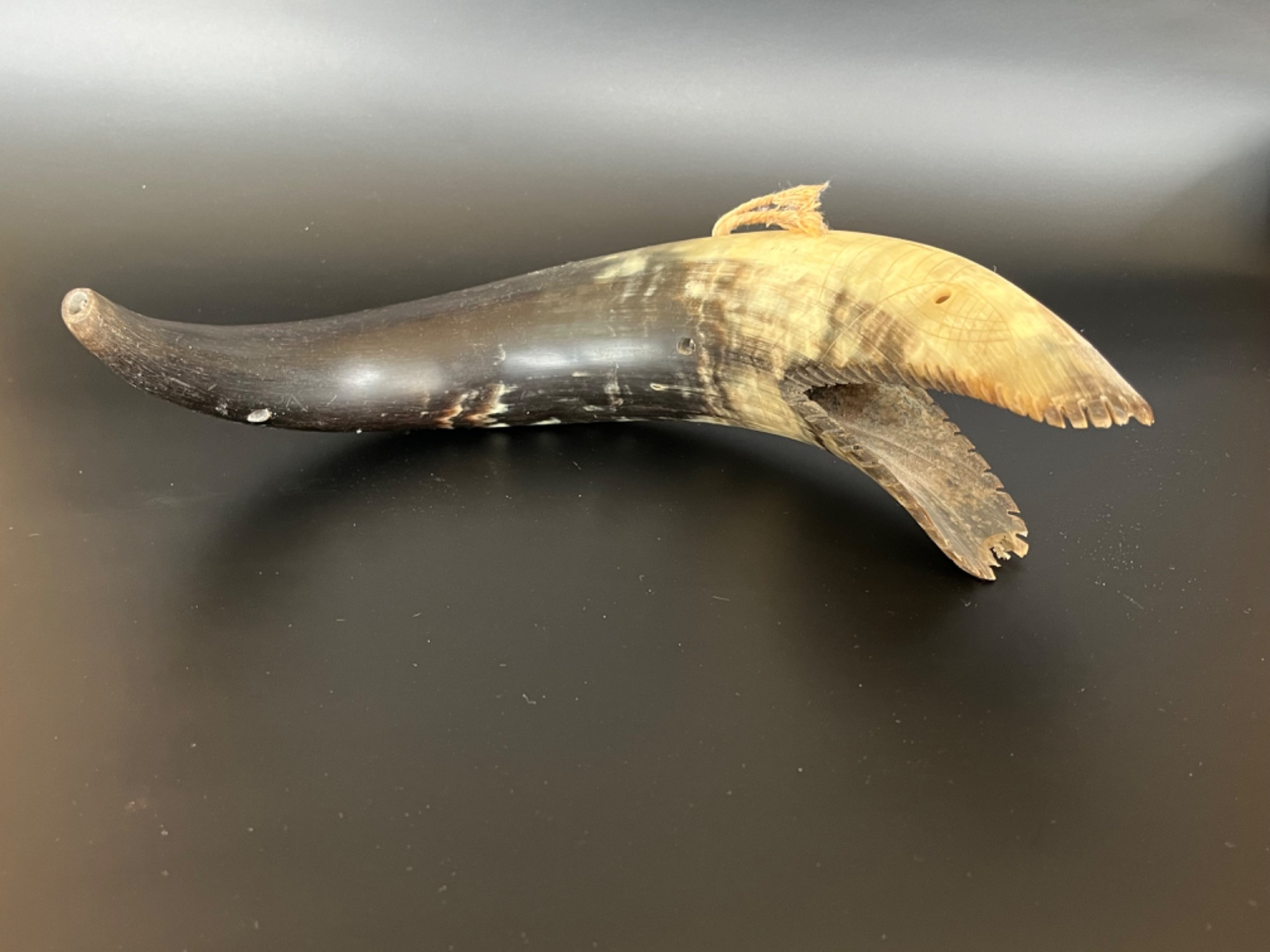 Antique Scrimshaw Bull Horn Carving Of Fish Figurine. Origin unknown. Antique items offered for auction on the Site are sold “as is”. We endeavor to describe and display the items accurately and truthfully; however, we cannot guarantee the accuracy or reliability of any item’s description or condition. We strongly encourage all bidders to review images, descriptions, and condition reports and to contact us for additional information prior to bidding.