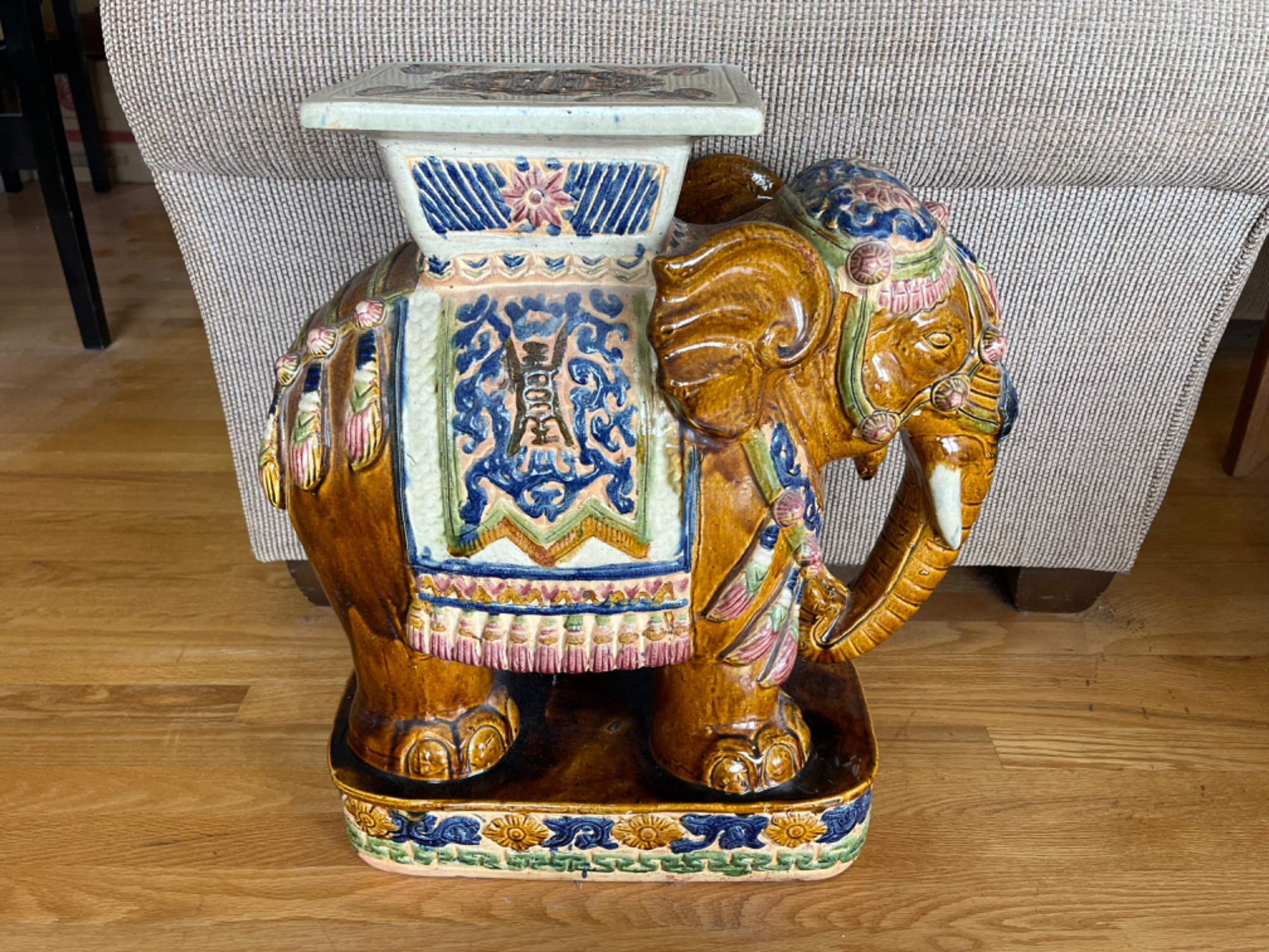 Ceramic Majolica Elephant Plant Stand/Garden Stool. Heavy, appears to be older.