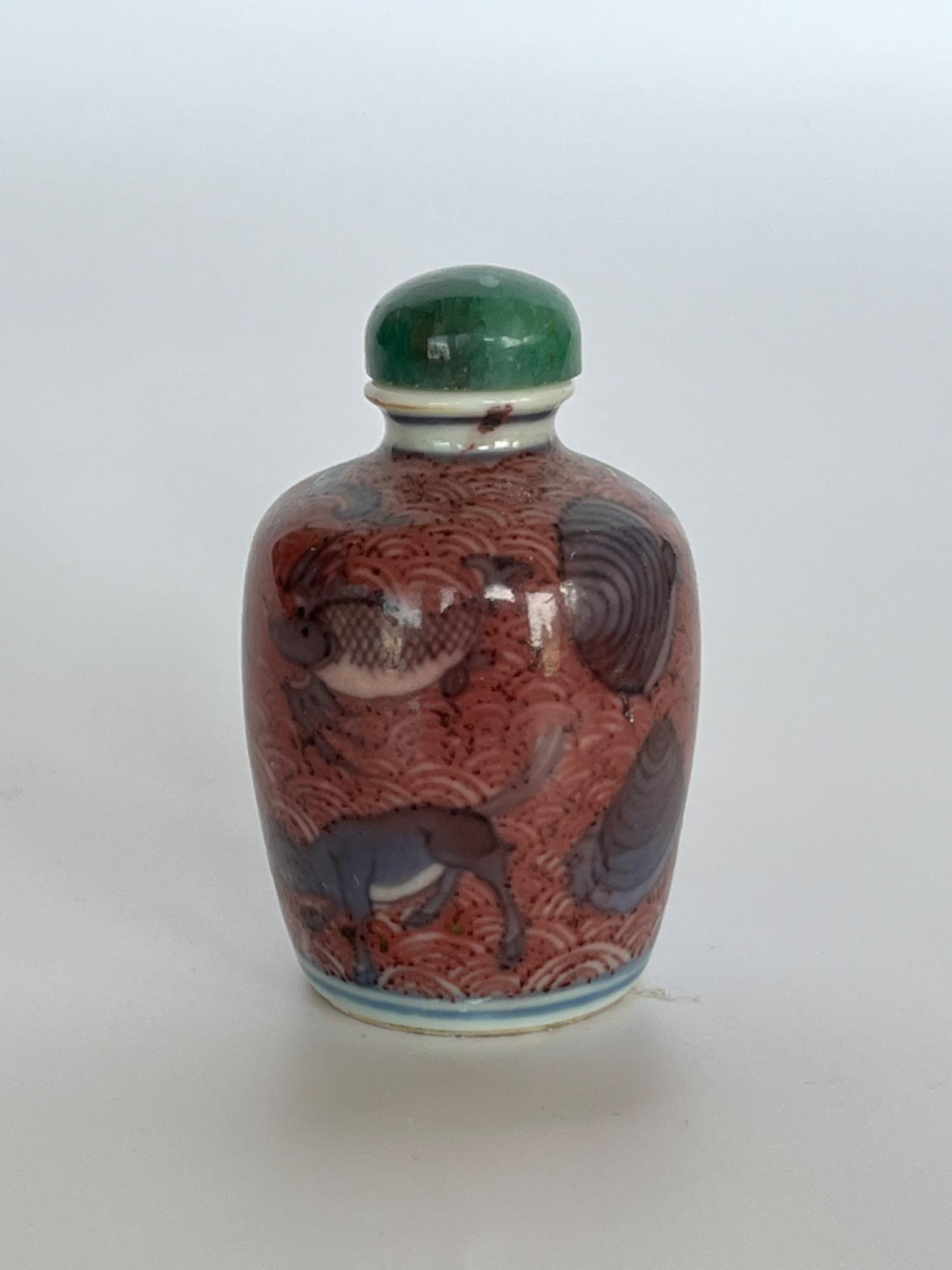 Lot # 15 - Antique Porcelain and Jade Snuff Bottle-Animal/Fish Motif