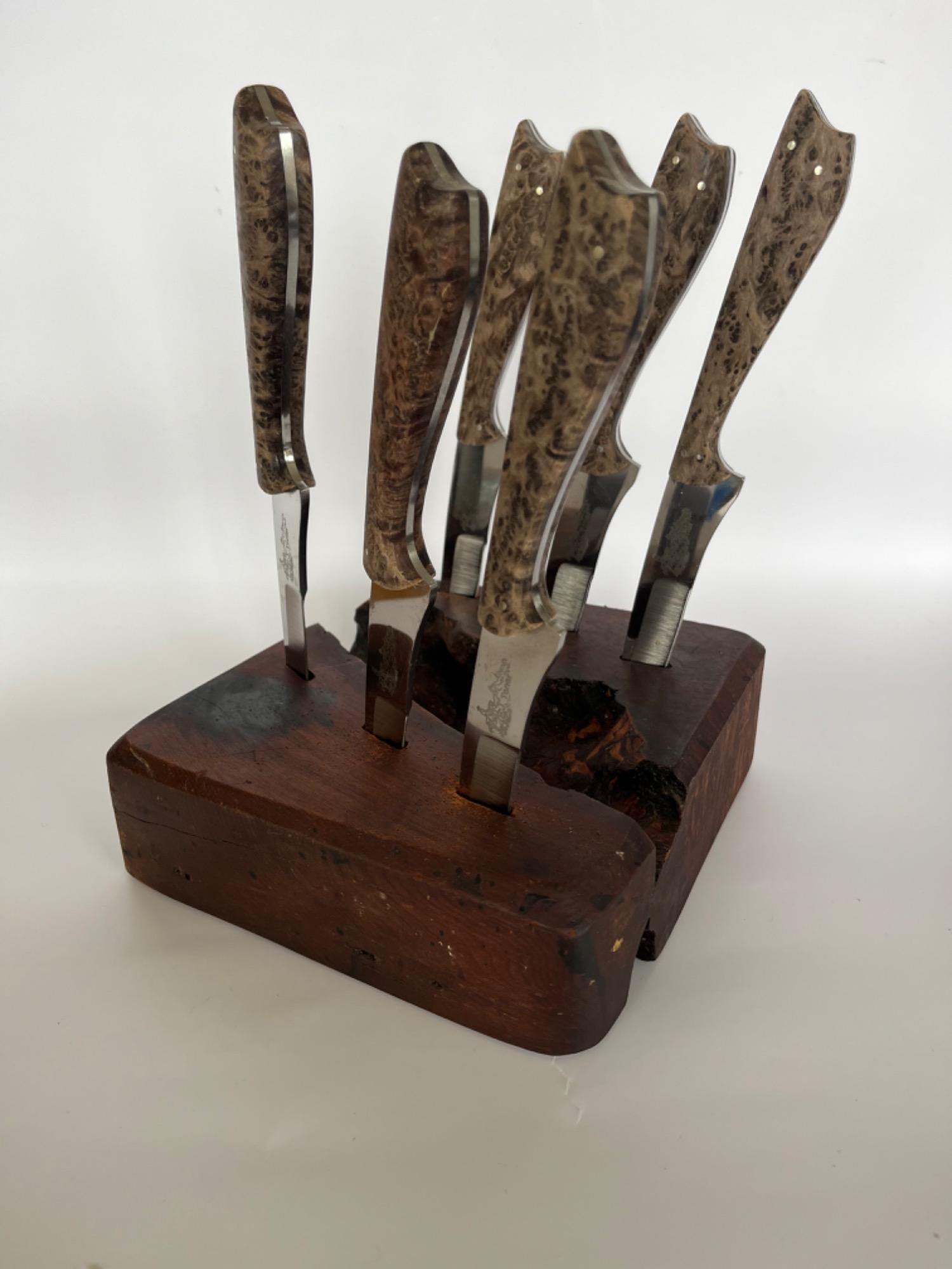Lot # 27 - Handmade J. Toner Burlwood Steak Knife Set-Six Knives Total