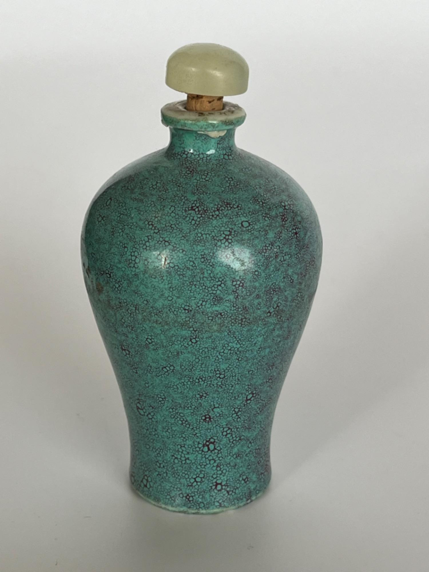 Antique Glazed Porcelain and Jade Snuff Bottle. Antique items offered for auction on the Site are sold “as is”. We endeavor to describe and display the items accurately and truthfully; however, we cannot guarantee the accuracy or reliability of any item’s description or condition. We strongly encourage all bidders to review images, descriptions, and condition reports and to contact us for additional information prior to bidding.