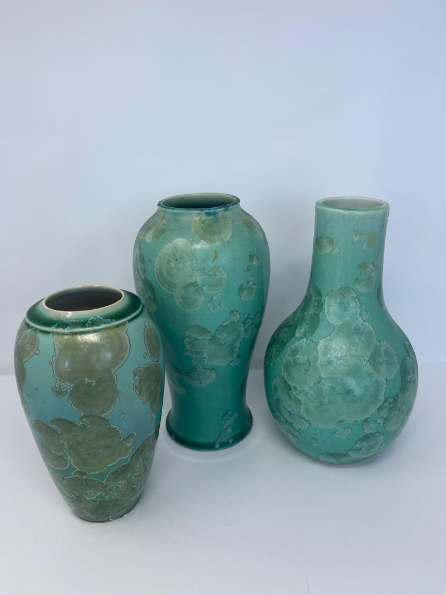Arcanum Pottery - Three Signed Crystalline Vases 10”, 9.5” and 7”